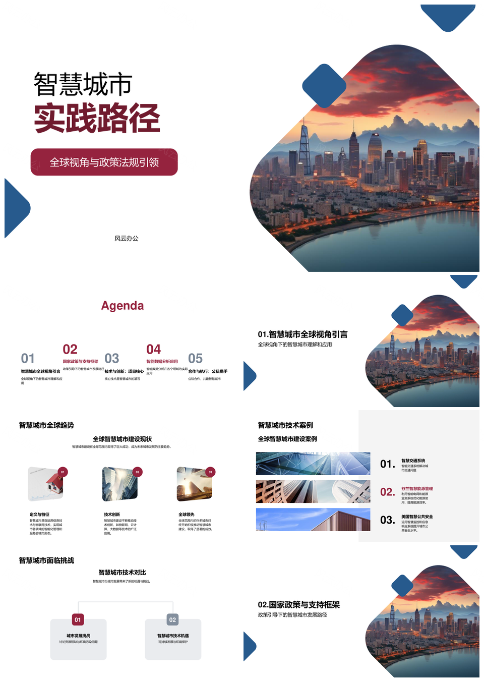 智慧城市全球趋势政策技术能源管理实践PPT模板推荐