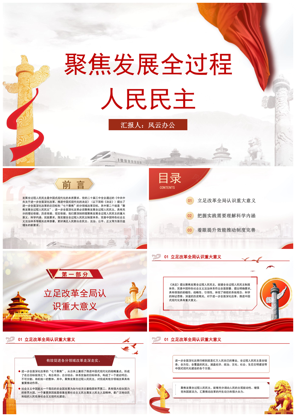 发展全过程人民民主全面深化改革七个聚焦党课PPT模板推荐