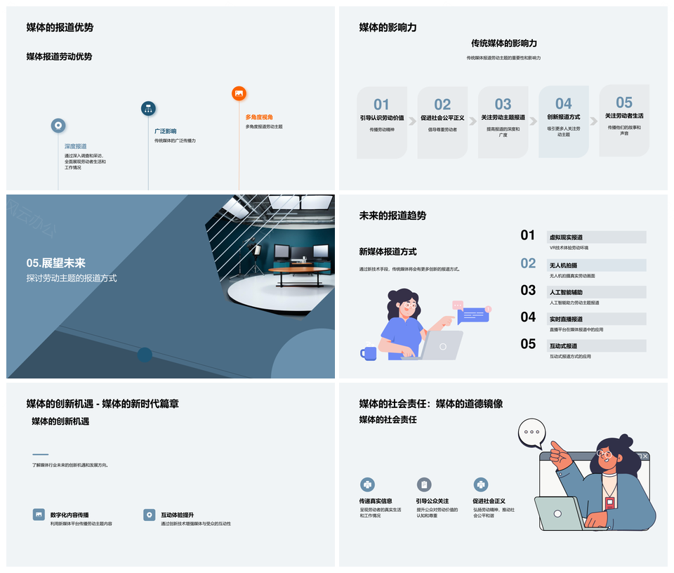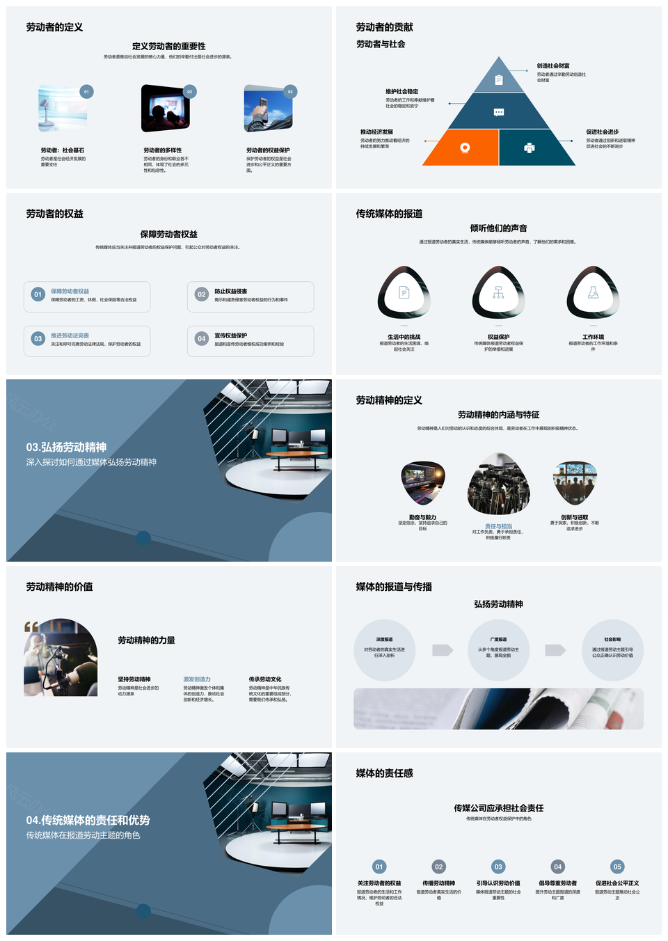 风云办公提供的传统媒体担责传扬劳动者基石风采PPT模板,下载格式为pptx,一共24页,作品中文字及图均可以修改和编辑,图片更改请在作品中右键图片并更换,文字修改请直接点击文字进行修改。