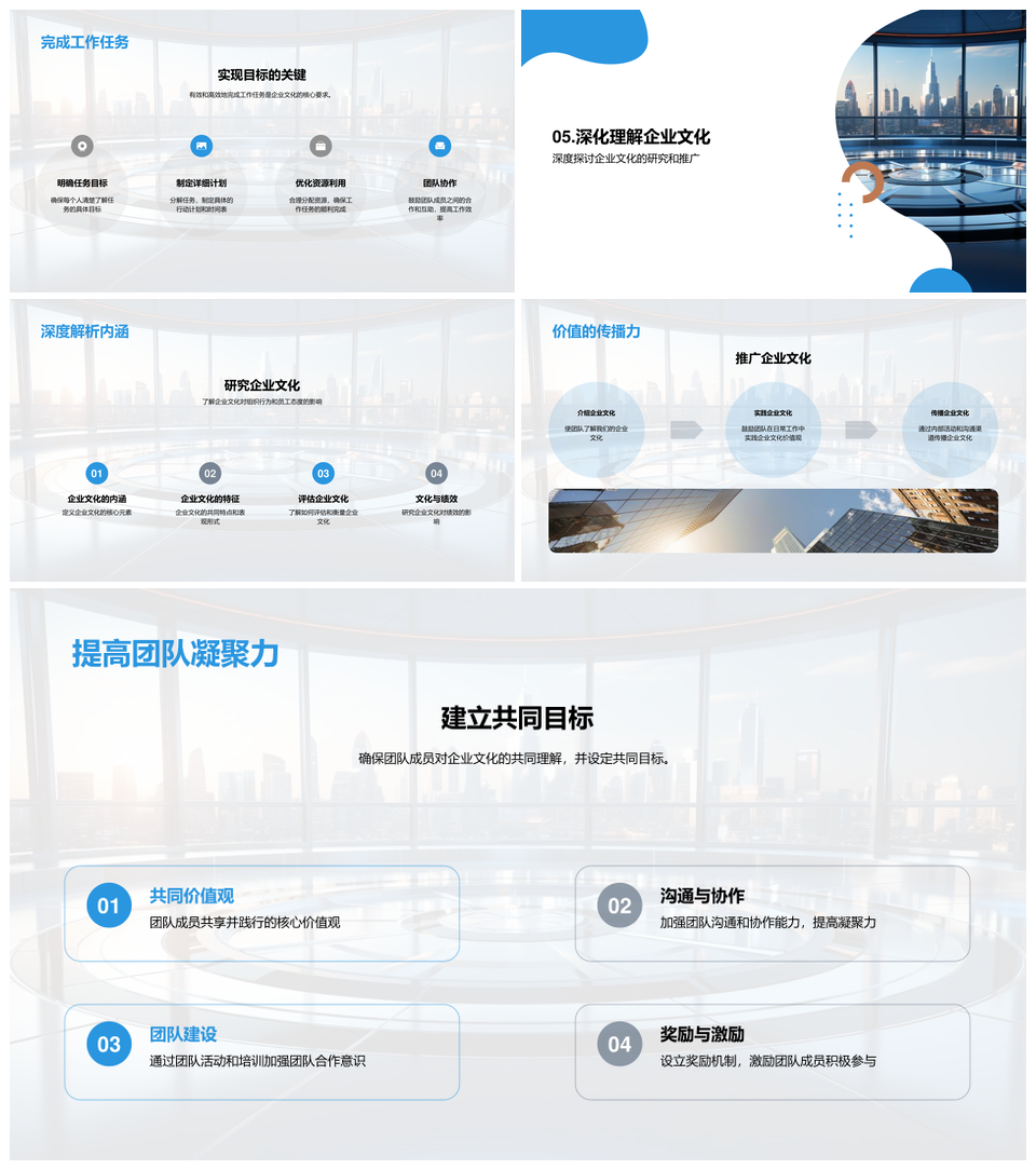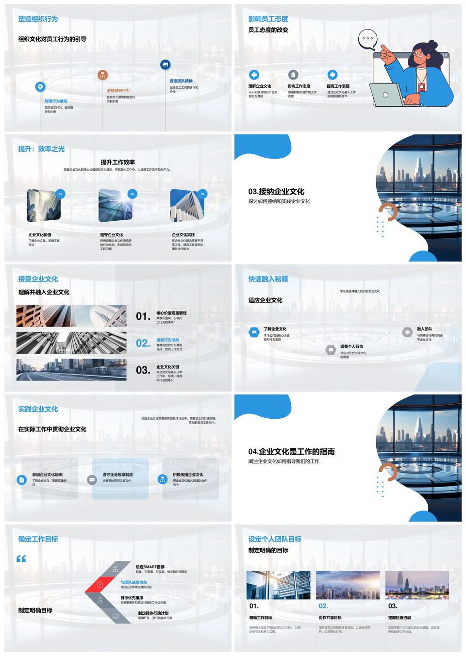 风云办公提供的企业文化组织行为与员工效率目标实践PPT模板,下载格式为pptx,一共23页,作品中文字及图均可以修改和编辑,图片更改请在作品中右键图片并更换,文字修改请直接点击文字进行修改。