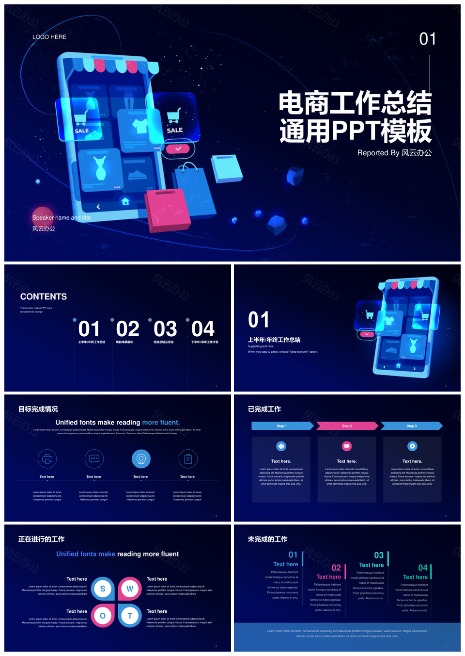 风云办公提供的蓝色电商活动互联网工作总结PPT模板,下载格式为pptx,一共15页,作品中文字及图均可以修改和编辑,图片更改请在作品中右键图片并更换,文字修改请直接点击文字进行修改。