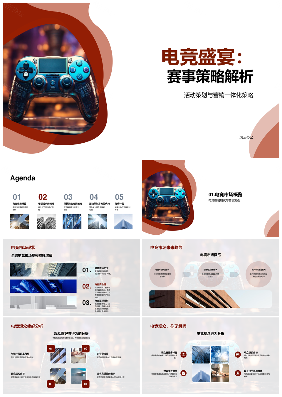 风云办公提供的电竞盛宴赛事策略营销一体化活动解析PPT模板,下载格式为pptx,一共33页,作品中文字及图均可以修改和编辑,图片更改请在作品中右键图片并更换,文字修改请直接点击文字进行修改。
