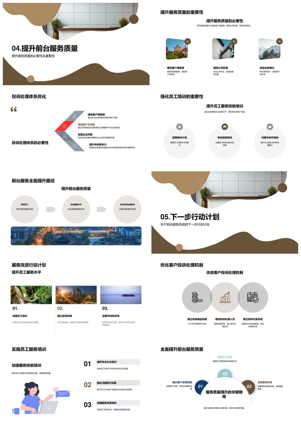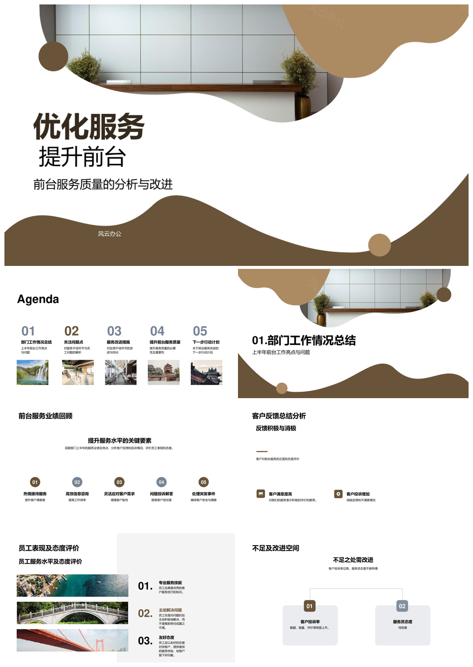 风云办公提供的优化餐饮前台服务提升接待质量PPT模板,下载格式为pptx,一共28页,作品中文字及图均可以修改和编辑,图片更改请在作品中右键图片并更换,文字修改请直接点击文字进行修改。