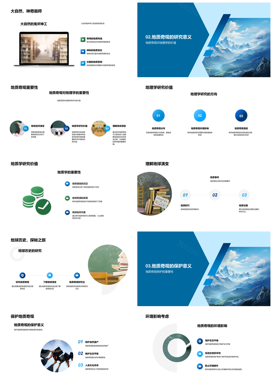 风云办公提供的地质奇观山脉形成演变与保护研究PPT模板,下载格式为pptx,一共33页,作品中文字及图均可以修改和编辑,图片更改请在作品中右键图片并更换,文字修改请直接点击文字进行修改。