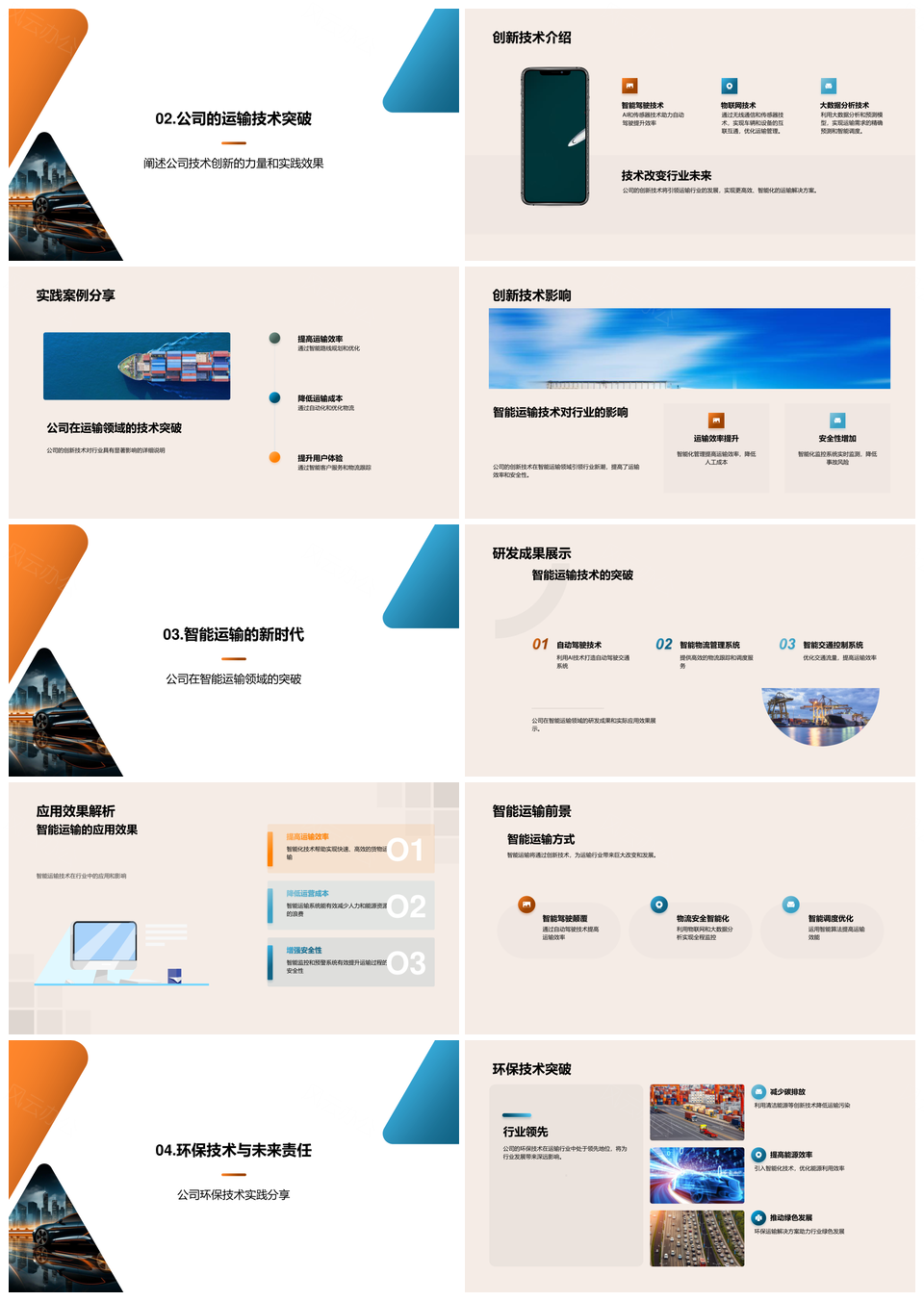 这是一张运输业智能电动技术创新驱动环保新趋势PPT模板,包含运输业、智能、电动技术、创新、驱动、环保、新趋势等主题内容,也可用作运输业智能电动技术创新、智能电动技术创新驱动、电动技术创新驱动环保、创新驱动环保新趋势、运输业智能电动技术、智能电动技术创新、电动技术创新驱动、创新驱动环保、驱动环保新趋势、运输业智能、智能电动技术、电动技术创新、创新驱动、驱动环保、环保新趋势等PPT场景使用。 风云办公提供的运输业智能电动技术创新驱动环保新趋势PPT模板,下载格式为pptx,一共24页,作品中文字及图均可以修改和编辑,图片更改请在作品中右键图片并更换,文字修改请直接点击文字进行修改。