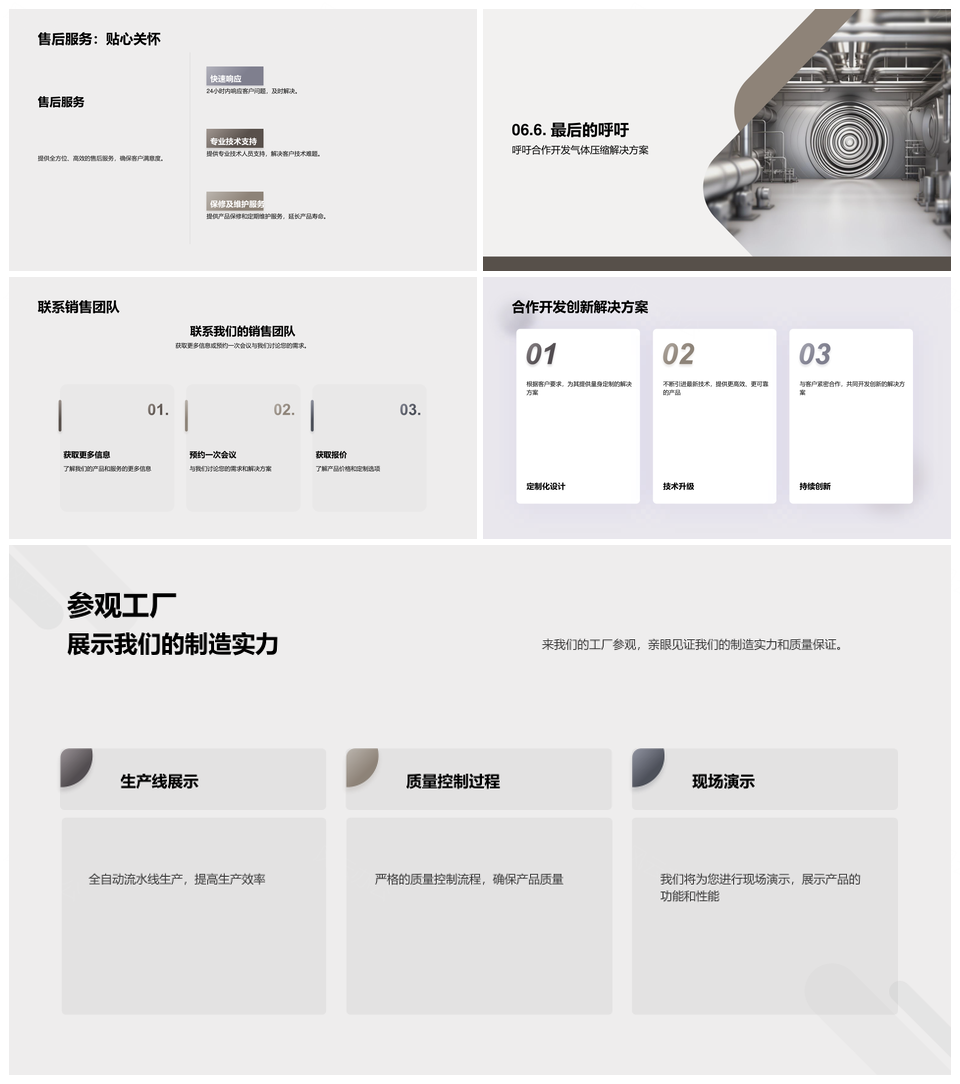 这是一张压缩机企业历史核心技术成功案例领航发展PPT模板,包含压缩机、企业、历史、核心技术、成功、案例、领航、发展等主题内容,也可用作压缩机企业历史核心技术、压缩机企业核心技术成功案例、企业历史核心技术成功案例、核心技术成功案例领航发展、压缩机企业核心技术发展、压缩机企业核心技术、企业历史核心技术、核心技术成功案例领航、成功案例领航发展、企业核心技术成功案例、压缩机核心技术成功案例、企业核心技术、核心技术成功案例、成功案例领航、领航发展等PPT场景使用。 风云办公提供的压缩机企业历史核心技术成功案例领航发展PPT模板,下载格式为pptx,一共33页,作品中文字及图均可以修改和编辑,图片更改请在作品中右键图片并更换,文字修改请直接点击文字进行修改。