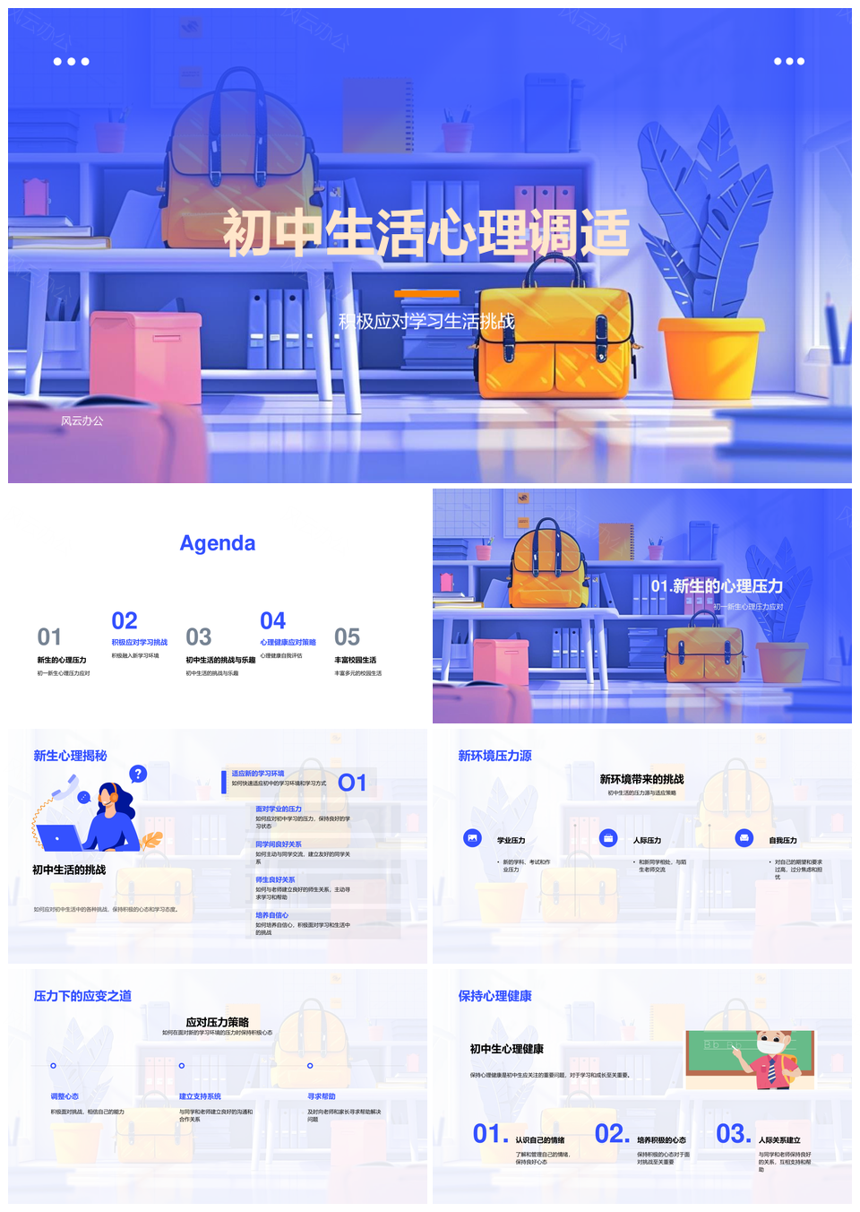 这是一张初中新生心理调适应对压力适应环境健康策略PPT模板,包含初中新生、心理调适、应对压力、适应环境、健康策略等主题内容,也可用作初中新生心理调适应对压力、新生心理调适应对压力适应、心理调适应对压力适应环境、应对压力适应环境健康、压力适应环境健康策略、初中新生应对压力适应、新生心理调适应对压力、心理调适应对环境健康、调适应对环境健康策略、适应环境健康策略应对、初中新生心理调适、应对压力适应策略、适应环境健康压力、环境健康策略调适、心理调适健康策略等PPT场景使用。 风云办公提供的初中新生心理调适应对压力适应环境健康策略PPT模板,下载格式为pptx,一共28页,作品中文字及图均可以修改和编辑,图片更改请在作品中右键图片并更换,文字修改请直接点击文字进行修改。