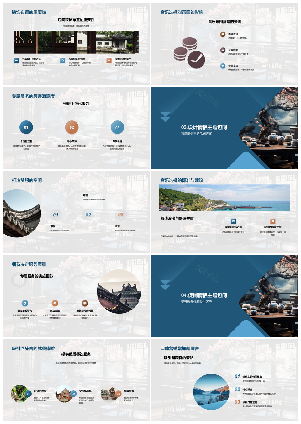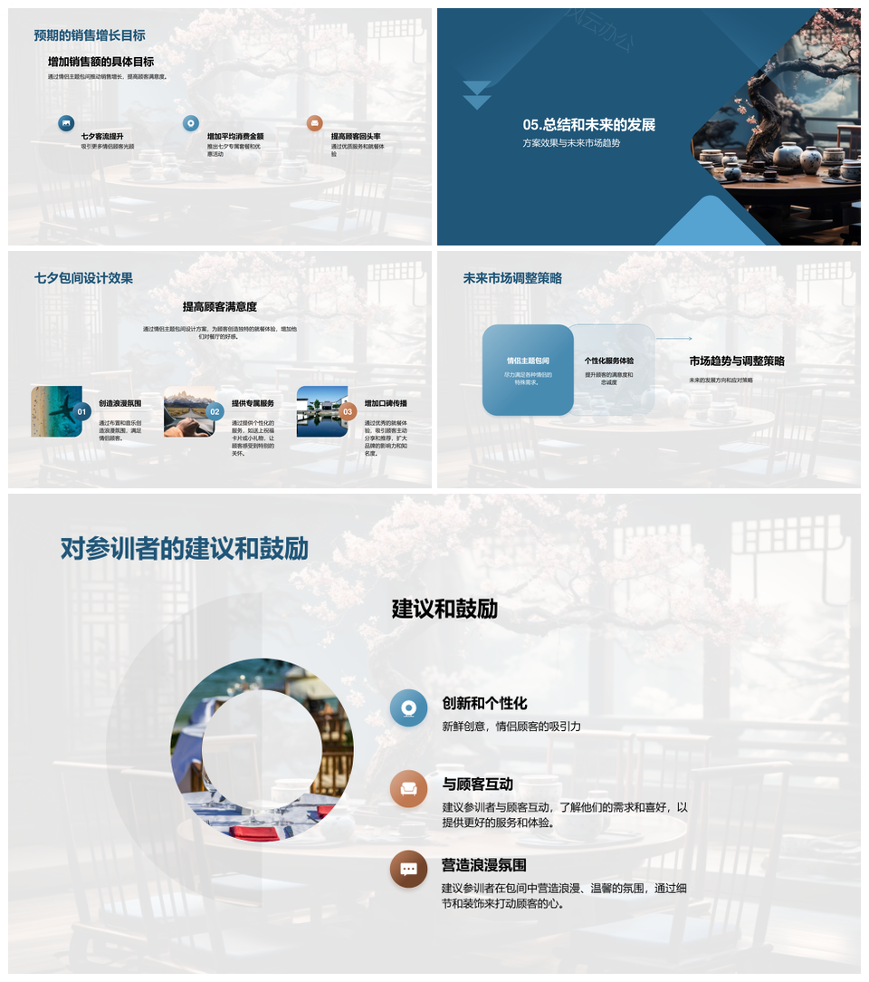 这是一张七夕主题包间装饰音乐专属服务提升销售客户满意PPT模板,包含七夕、主题、包间、装饰、音乐、专属、服务、提升、销售、客户、满意等主题内容,也可用作七夕主题包间装饰、主题包间装饰音乐、包间装饰音乐专属服务、音乐专属服务提升销售、提升销售客户满意、七夕主题包间、主题包间装饰、包间装饰音乐、专属服务提升销售、销售客户满意、七夕主题、主题包间、包间装饰、装饰音乐、音乐专属服务等PPT场景使用。 风云办公提供的七夕主题包间装饰音乐专属服务提升销售客户满意PPT模板,下载格式为pptx,一共23页,作品中文字及图均可以修改和编辑,图片更改请在作品中右键图片并更换,文字修改请直接点击文字进行修改。
