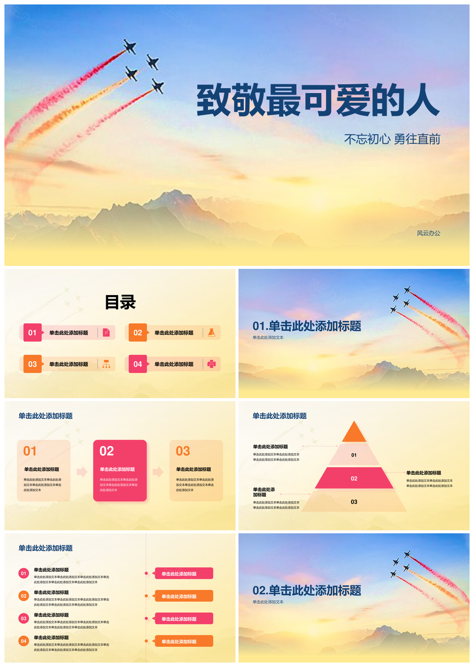 风云办公提供的蓝黄红色八一建军节培训课件PPT模板,下载格式为pptx,一共20页,作品中文字及图均可以修改和编辑,图片更改请在作品中右键图片并更换,文字修改请直接点击文字进行修改。