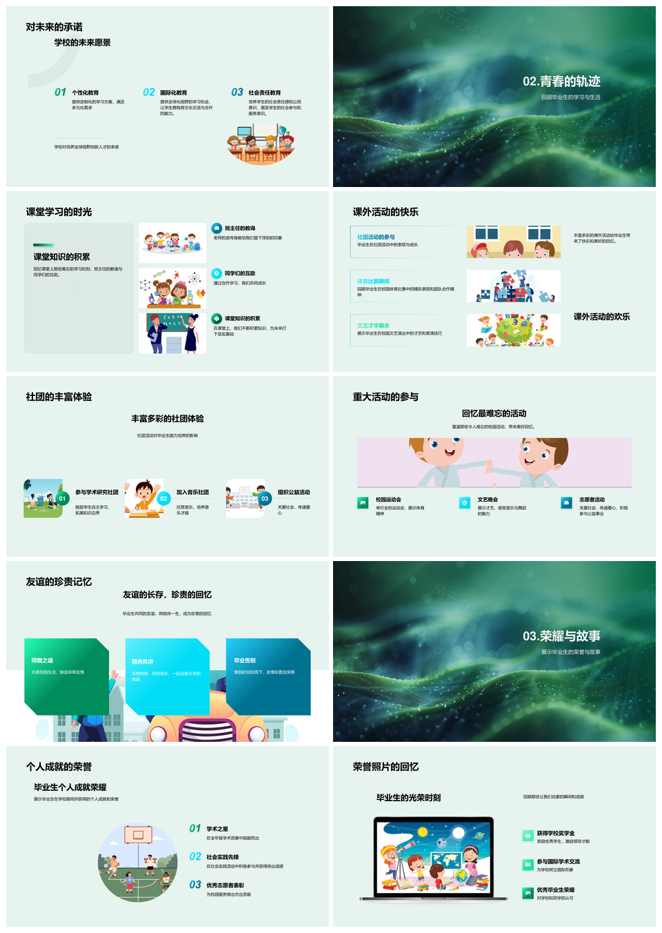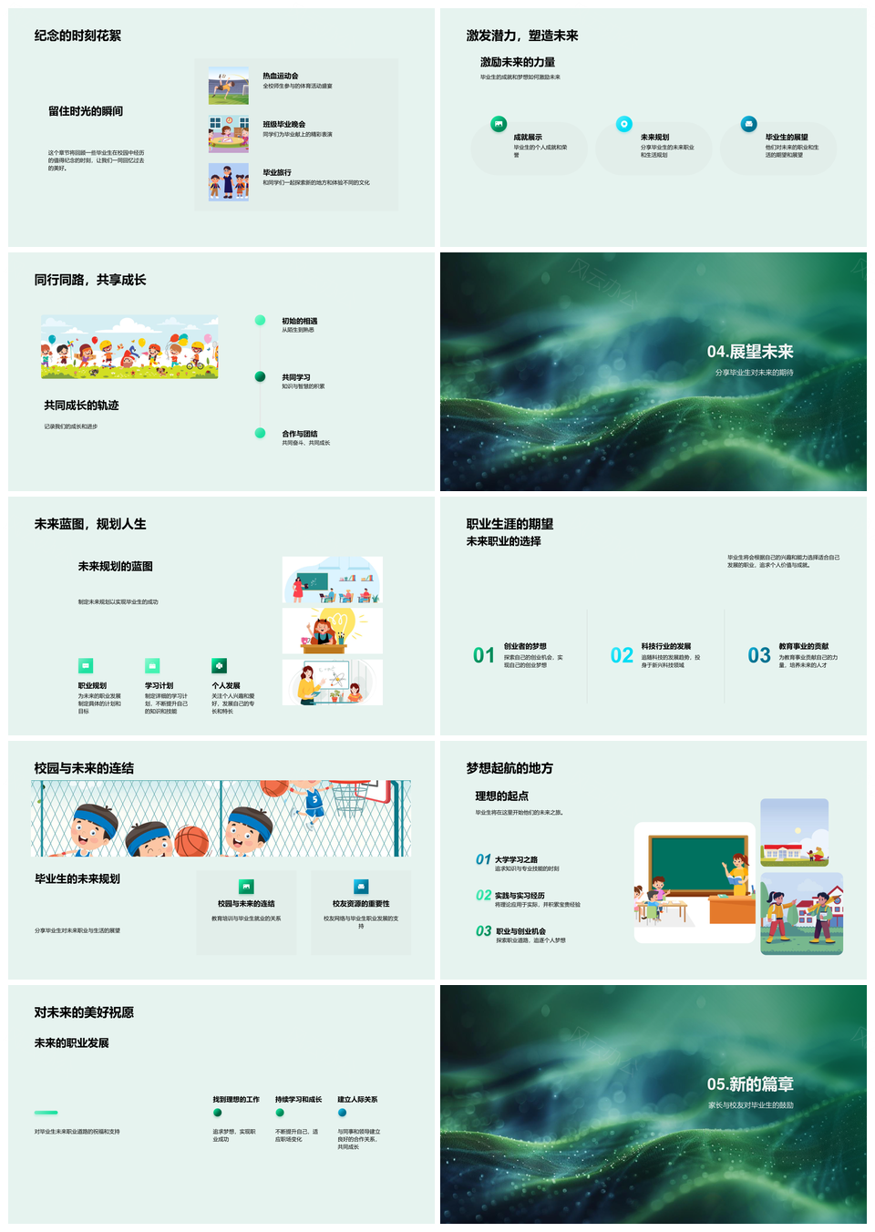 这是一张毕业生校园成长教育成就生涯规划校友资源展示PPT模板,包含毕业生、校园、成长、教育、成就、生涯、规划、校友、资源、展示等主题内容,也可用作校园成长教育成就、成长教育成就生涯规划、教育成就生涯规划校友资源、成就生涯规划校友资源展示、毕业生校园成长教育、校园教育成就生涯规划、成长教育成就校友资源、教育成就生涯校友资源、成就生涯规划校友展示、校园成长教育校友、成长教育生涯规划、教育成就校友资源、校园成长教育、成长教育成就、教育成就生涯、成就生涯规划、生涯规划校友、校友资源展示、校园成长教育成就、成长教育成就规划、教育成就生涯资源等PPT场景使用。 风云办公提供的毕业生校园成长教育成就生涯规划校友资源展示PPT模板,下载格式为pptx,一共33页,作品中文字及图均可以修改和编辑,图片更改请在作品中右键图片并更换,文字修改请直接点击文字进行修改。