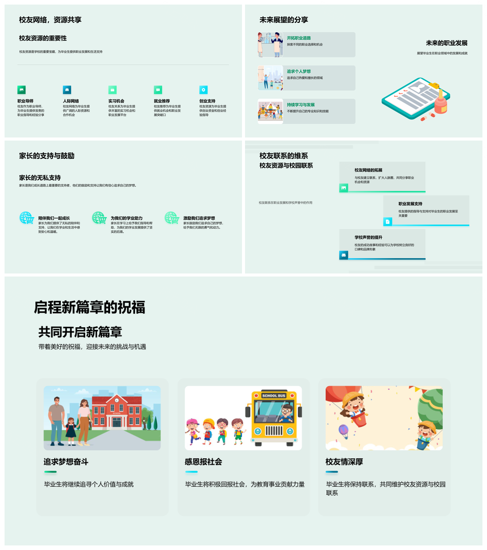 毕业生校园成长教育成就生涯规划校友资源展示PPT模板推荐