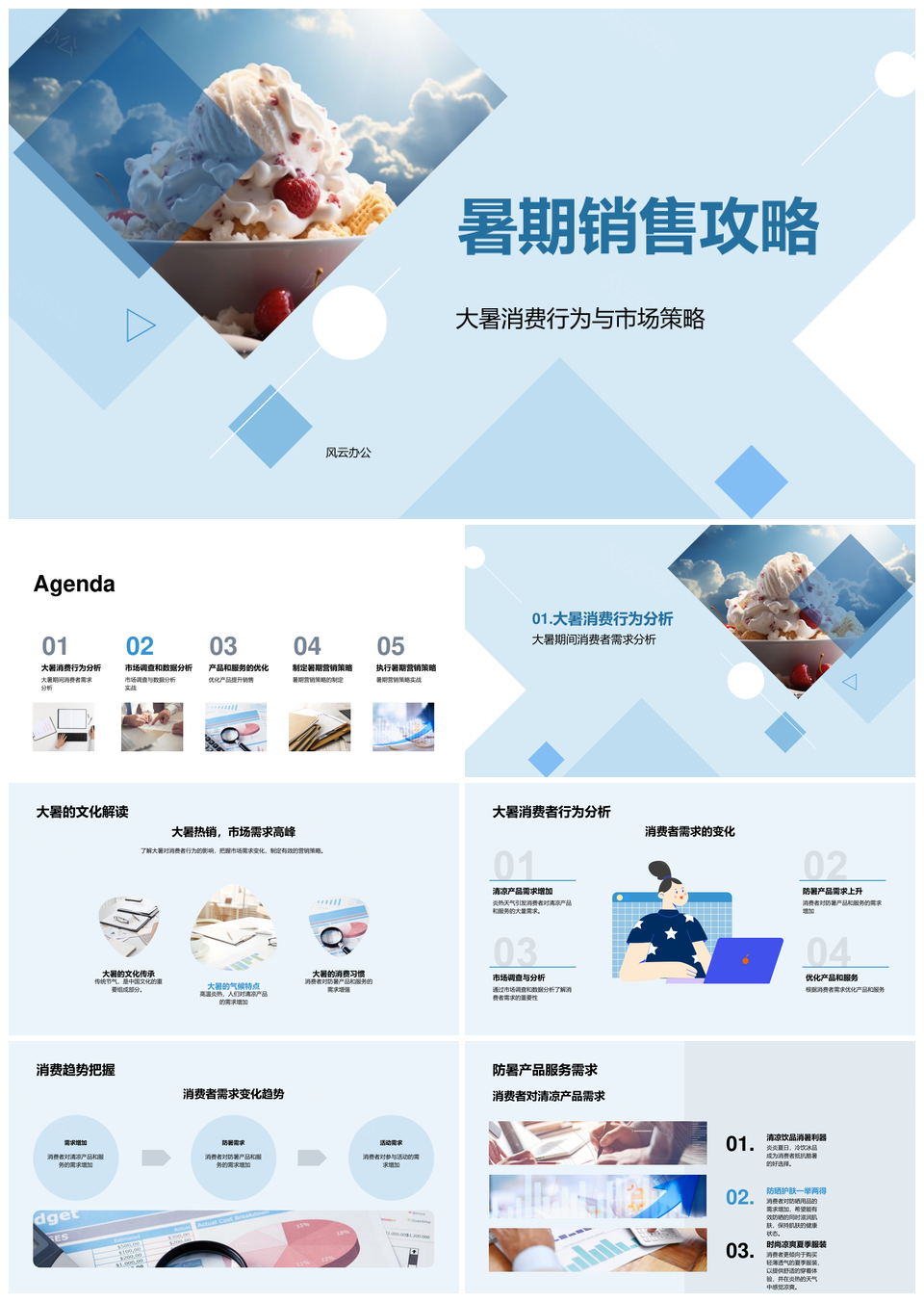 风云办公提供的暑期清凉产品市场策略与需求优化分析PPT模板,下载格式为pptx,一共33页,作品中文字及图均可以修改和编辑,图片更改请在作品中右键图片并更换,文字修改请直接点击文字进行修改。