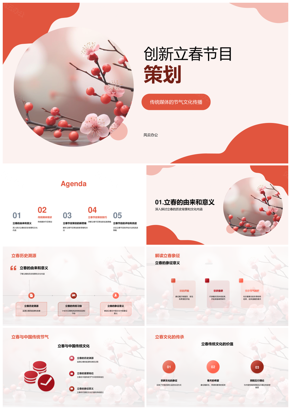 创新立春节目策划传统媒体传扬节气文化PPT模板推荐