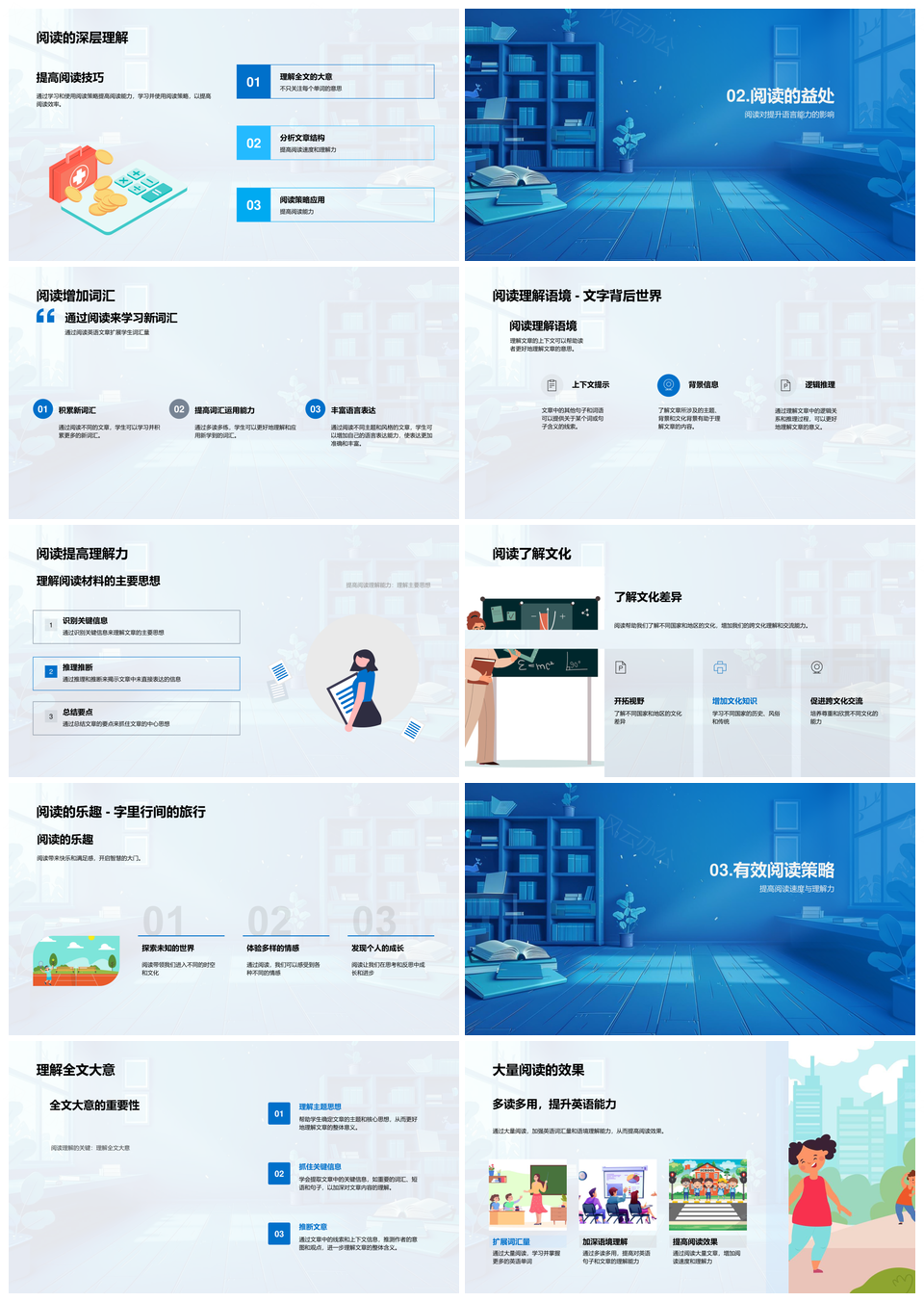 风云办公提供的英语阅读策略精进词汇结构理解提升PPT模板,下载格式为pptx,一共33页,作品中文字及图均可以修改和编辑,图片更改请在作品中右键图片并更换,文字修改请直接点击文字进行修改。