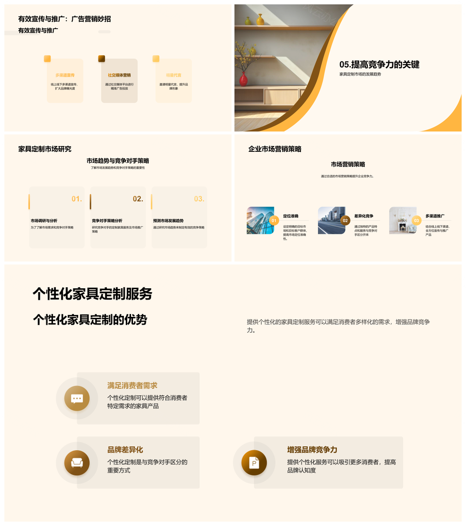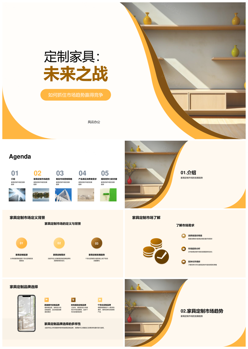 定制家具市场趋势企业竞争策略年度会议演讲PPT模板