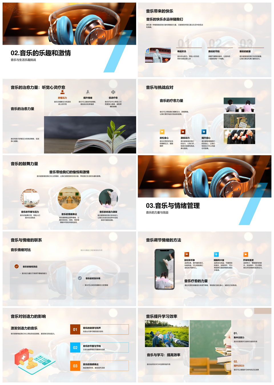 风云办公提供的音乐多维力量赋能情绪效率创造力PPT模板,下载格式为pptx,一共28页,作品中文字及图均可以修改和编辑,图片更改请在作品中右键图片并更换,文字修改请直接点击文字进行修改。