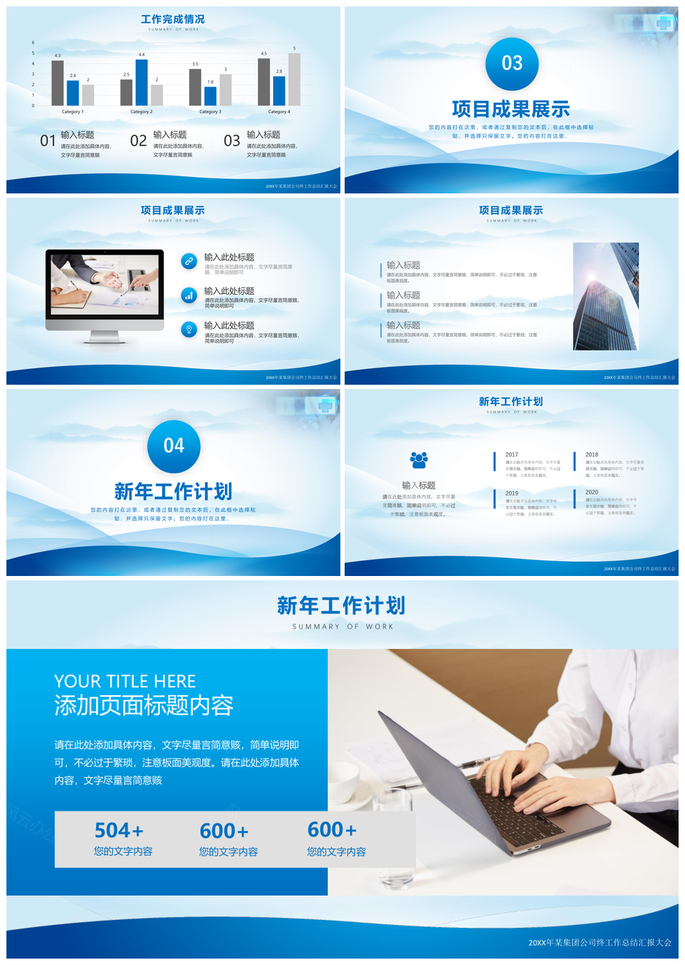 2025蓝色简约清新商务年终总结工作汇报通用动态PPT模板