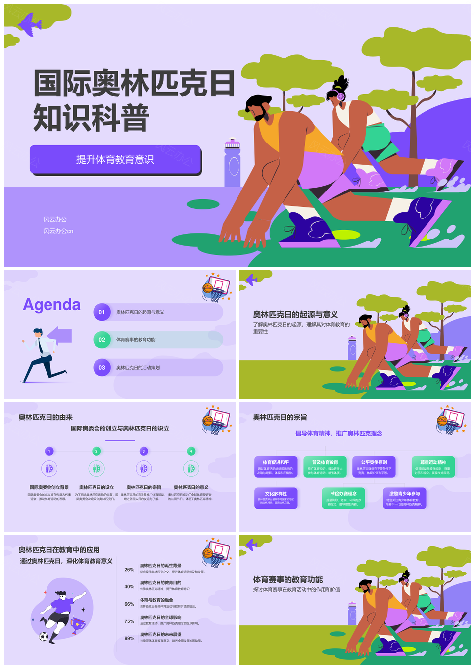 风云办公提供的国际奥林匹克日体育精神教育全球活动PPT模板,下载格式为pptx,一共16页,作品中文字及图均可以修改和编辑,图片更改请在作品中右键图片并更换,文字修改请直接点击文字进行修改。