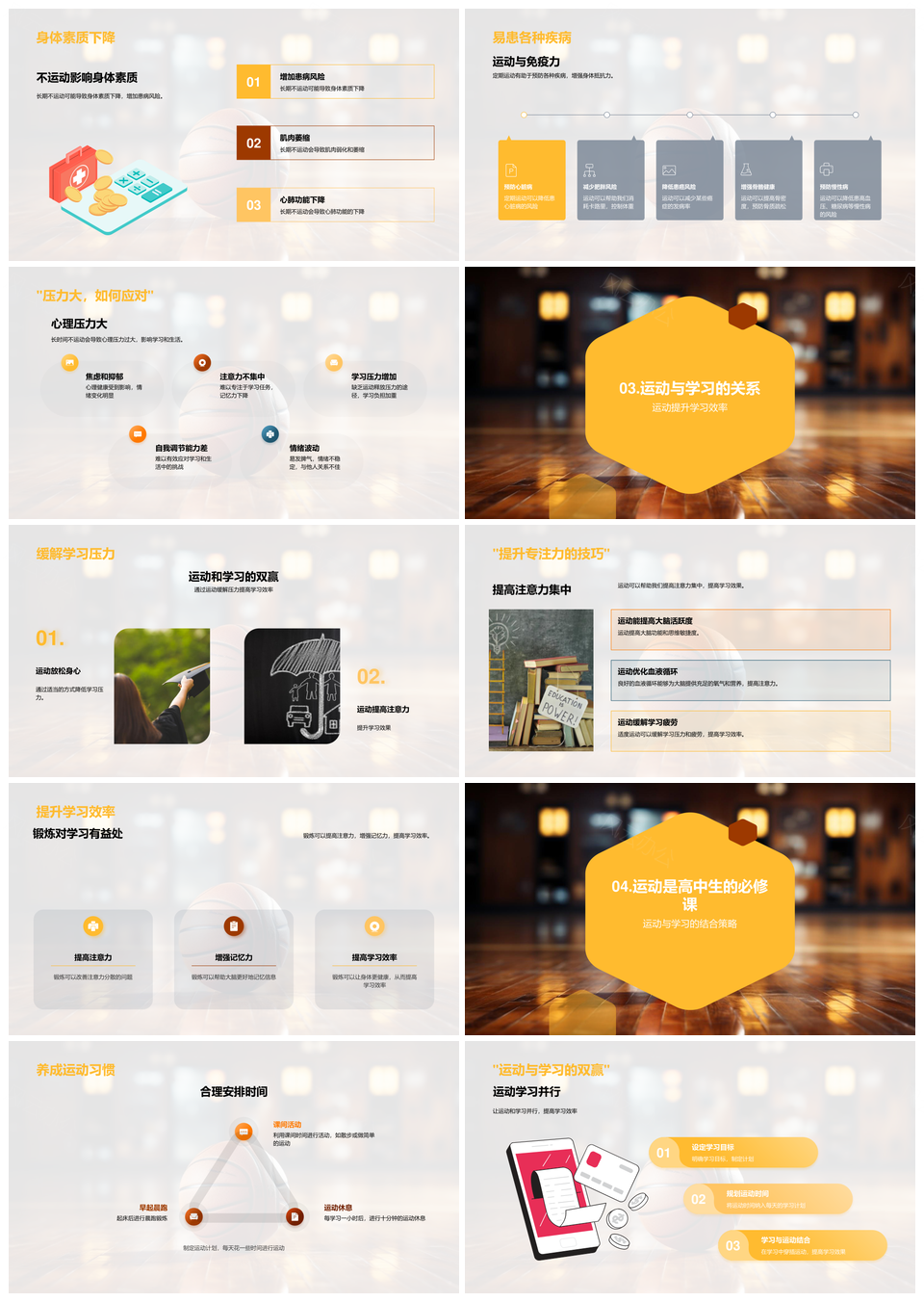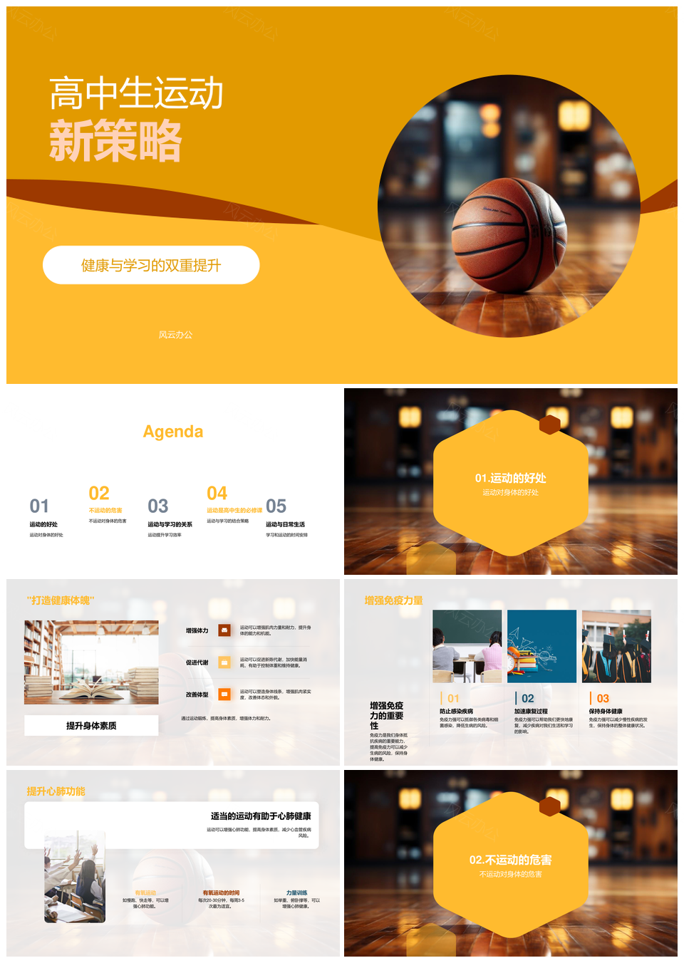 风云办公提供的高中生运动策略强健体质提升学习效率PPT模板,下载格式为pptx,一共23页,作品中文字及图均可以修改和编辑,图片更改请在作品中右键图片并更换,文字修改请直接点击文字进行修改。