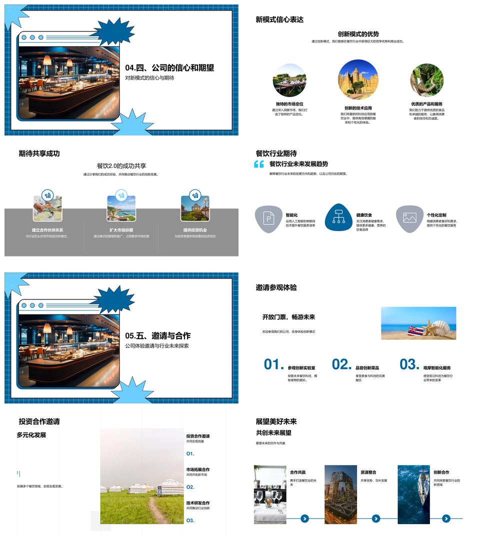 这是一张餐饮创新模式引领未来趋势赢市场优势PPT模板,包含餐饮、创新模式、引领、未来趋势、市场优势等主题内容,也可用作餐饮创新模式引领、创新模式引领未来、模式引领未来趋势、引领未来趋势市场、未来趋势市场优势、餐饮创新模式、创新模式引领、模式引领未来、引领未来趋势、未来趋势市场、趋势市场优势、餐饮创新、创新模式、模式引领、引领未来等PPT场景使用。