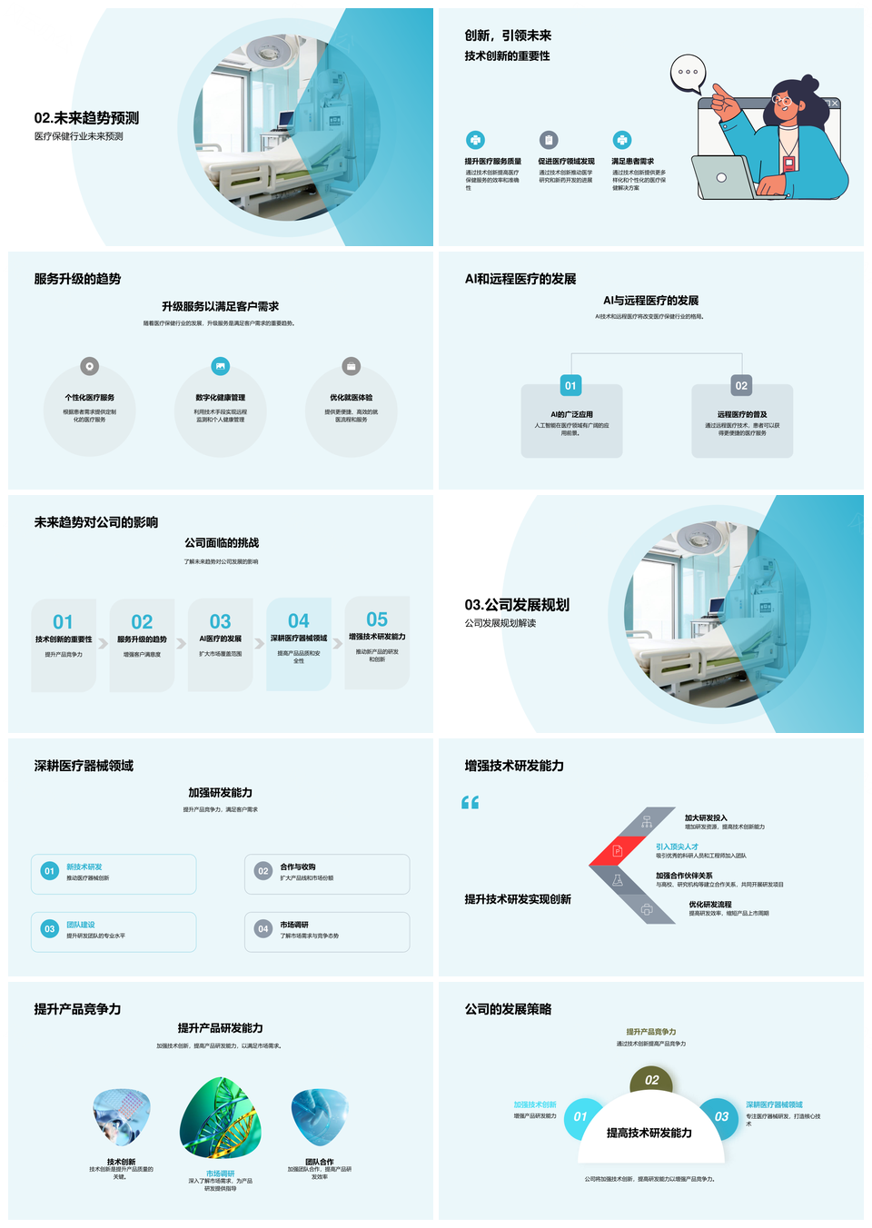 这是一张医保行业发展趋势及AI远程医疗技术革新PPT模板,包含医保行业、发展趋势、AI、远程医疗、技术革新等主题内容,也可用作医保行业发展趋势、AI远程医疗技术、远程医疗技术革新、行业发展趋势AI、AI远程医疗技术革新、医保行业发展趋势AI、发展趋势AI远程医疗、行业发展趋势远程医疗、医保行业AI远程医疗、AI远程医疗技术趋势、发展趋势远程医疗技术、医疗技术革新趋势、医保行业发展趋势远程、行业AI远程医疗技术、医保医疗技术革新等PPT场景使用。 风云办公提供的医保行业发展趋势及AI远程医疗技术革新PPT模板,下载格式为pptx,一共27页,作品中文字及图均可以修改和编辑,图片更改请在作品中右键图片并更换,文字修改请直接点击文字进行修改。