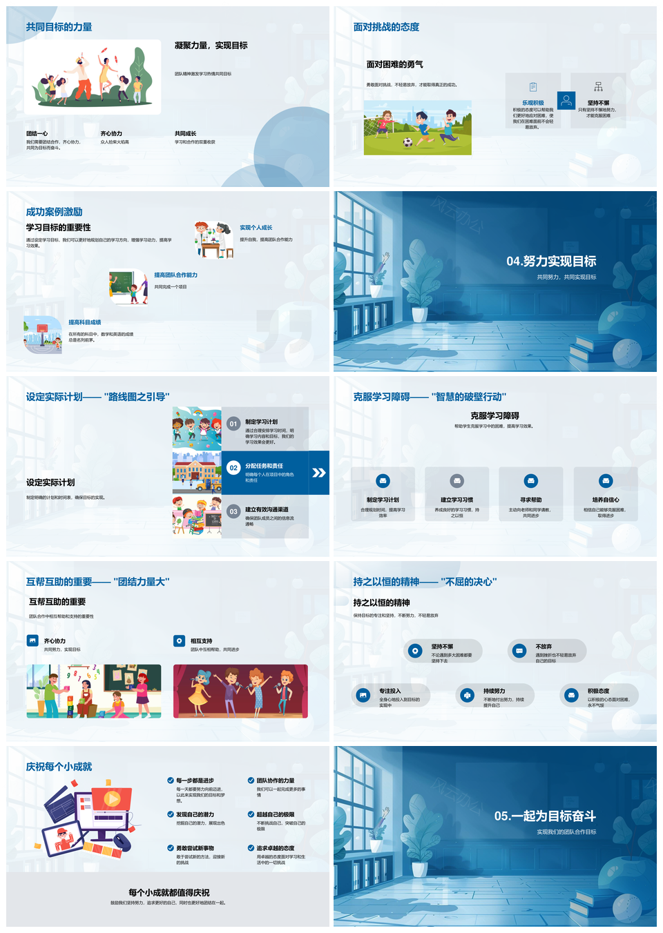 双提目标班会学习合作数学英语团队规划成长PPT模板推荐