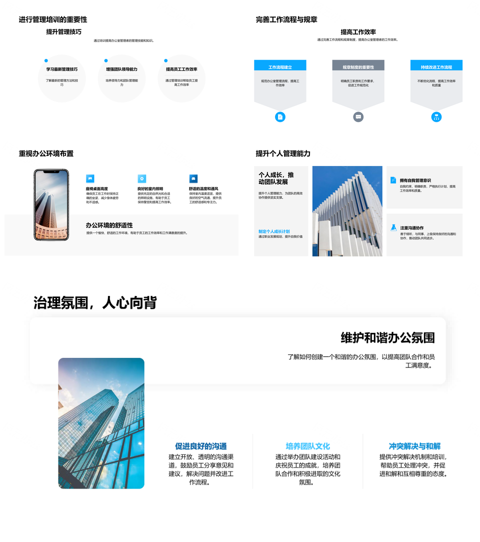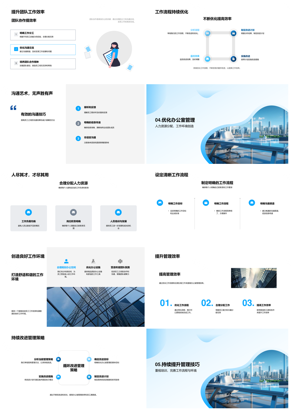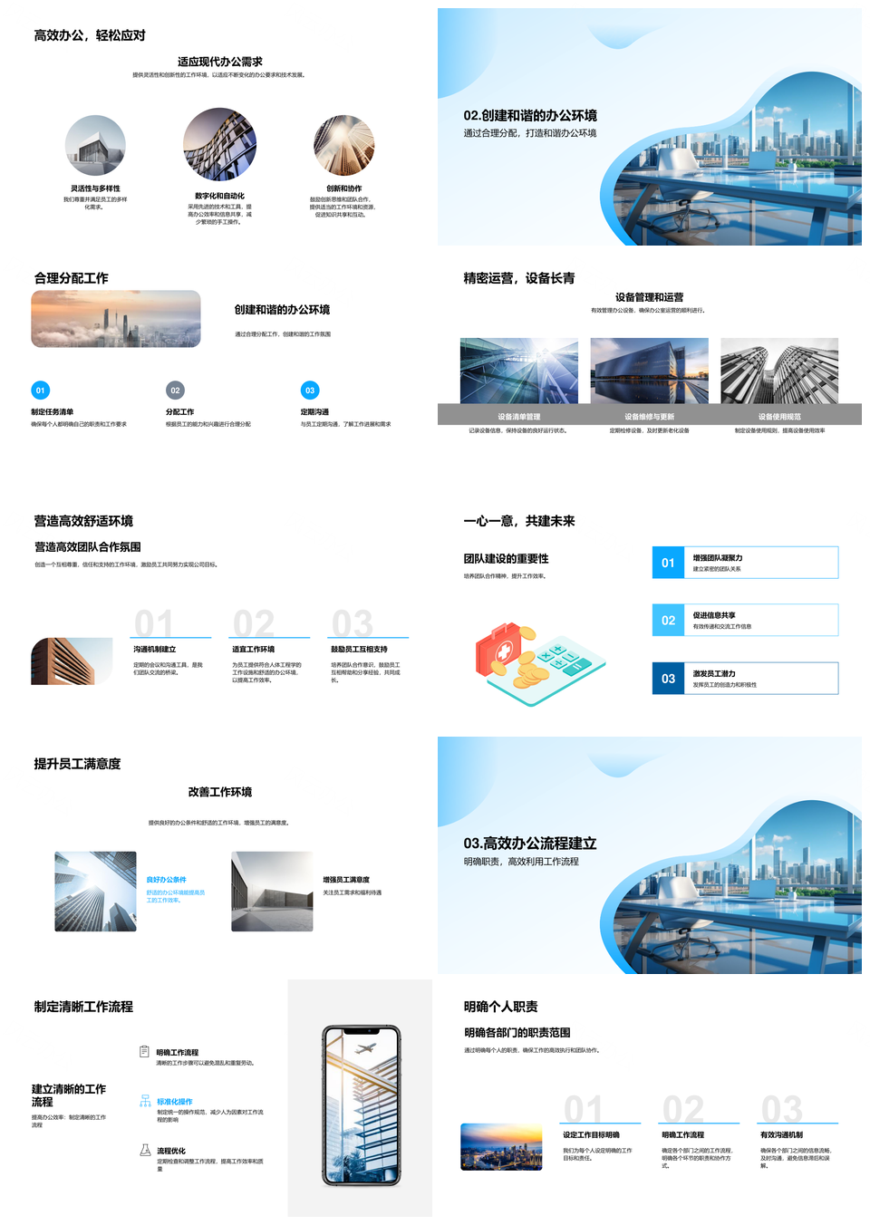 风云办公提供的优化办公环境流程提升高效管理效能PPT模板,下载格式为pptx,一共33页,作品中文字及图均可以修改和编辑,图片更改请在作品中右键图片并更换,文字修改请直接点击文字进行修改。