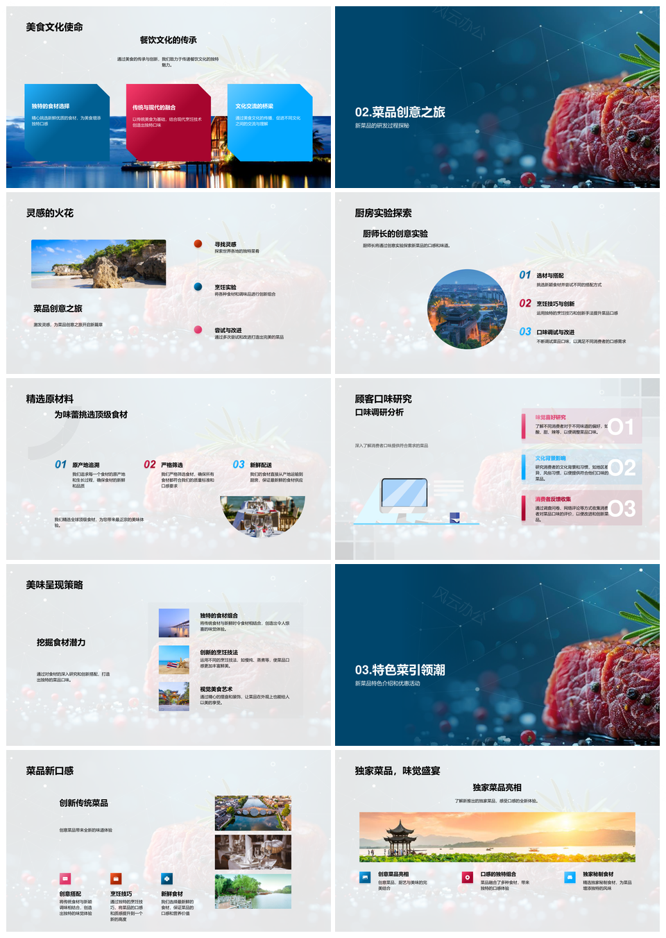 这是一张XX餐饮公司严选食材研发独特口味新品优惠PPT模板,包含XX餐饮公司、严选食材、研发、独特口味、新品、优惠等主题内容,也可用作XX餐饮公司严选食材研发、严选食材研发独特、食材研发独特口味、研发独特口味新品、独特口味新品优惠、XX餐饮公司严选食材、严选食材新品优惠、食材研发独特新品、研发独特口味优惠、独特口味新品研发、XX餐饮公司新品优惠、严选独特口味新品、食材研发新品优惠、新品独特口味优惠、研发新品独特口味等PPT场景使用。 风云办公提供的XX餐饮公司严选食材研发独特口味新品优惠PPT模板,下载格式为pptx,一共33页,作品中文字及图均可以修改和编辑,图片更改请在作品中右键图片并更换,文字修改请直接点击文字进行修改。