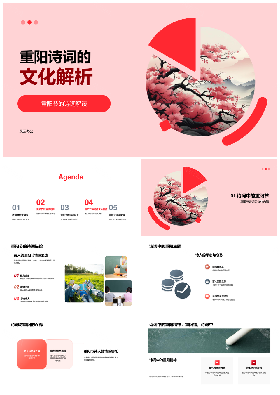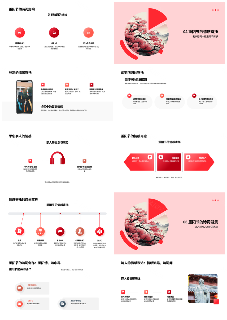 重阳节名家诗词菊花文化解析PPT模板推荐