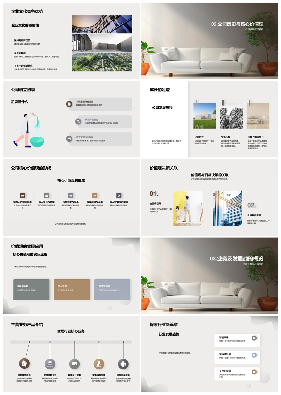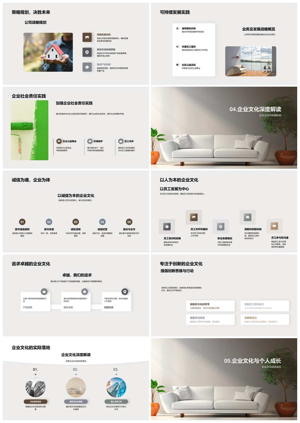 这是一张家居企业文化核心员工成长客户满意竞争优势PPT模板,包含家居、企业、文化、核心、员工、成长、客户、满意、竞争、优势等主题内容,也可用作家居企业文化核心员工、家居企业文化竞争优势、家居企业核心竞争优势、企业文化核心员工成长、核心员工成长客户满意、员工成长客户满意竞争、成长客户满意竞争优势、企业文化核心竞争优势、核心员工客户满意竞争、客户满意竞争优势成长、企业文化员工成长客户、家居企业核心员工成长、核心员工竞争优势家居、客户满意家居企业文化、企业文化竞争优势核心等PPT场景使用。 风云办公提供的家居企业文化核心员工成长客户满意竞争优势PPT模板,下载格式为pptx,一共33页,作品中文字及图均可以修改和编辑,图片更改请在作品中右键图片并更换,文字修改请直接点击文字进行修改。