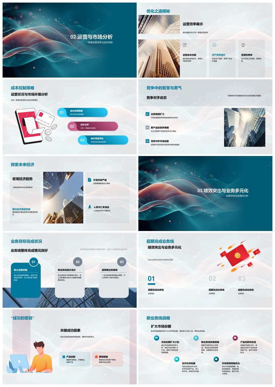 季度业务总结核心新业务增长潜力领域运营成本竞对动态PPT模板推荐