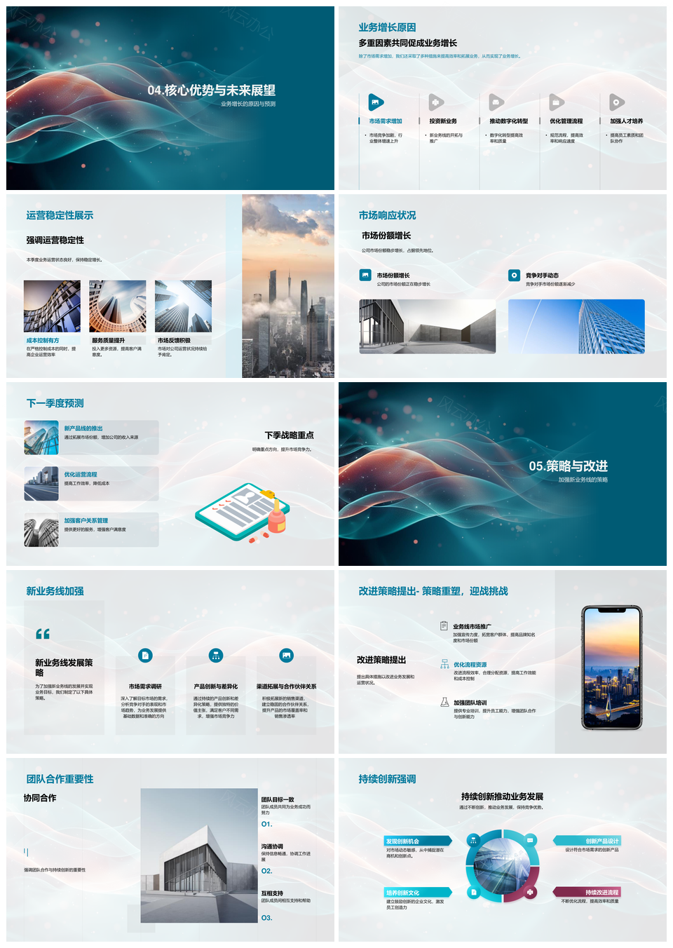 这是一张季度业务总结核心新业务增长潜力领域运营成本竞对动态PPT模板,包含季度、业务总结、核心、新业务、增长潜力、领域、运营成本、竞对等主题内容,也可用作季度业务总结核心新业务、总结核心新业务增长潜力、核心新业务增长潜力领域、新业务增长潜力领域运营成本、增长潜力领域运营成本竞对动态、季度业务总结核心新业务增长、核心新业务增长潜力领域运营、新业务增长潜力领域运营成本、增长潜力领域运营成本竞对、季度业务总结核心、总结核心新业务、核心新业务增长潜力、新业务增长潜力领域、增长潜力领域运营成本、领域运营成本竞对动态等PPT场景使用。 风云办公提供的季度业务总结核心新业务增长潜力领域运营成本竞对动态PPT模板,下载格式为pptx,一共28页,作品中文字及图均可以修改和编辑,图片更改请在作品中右键图片并更换,文字修改请直接点击文字进行修改。