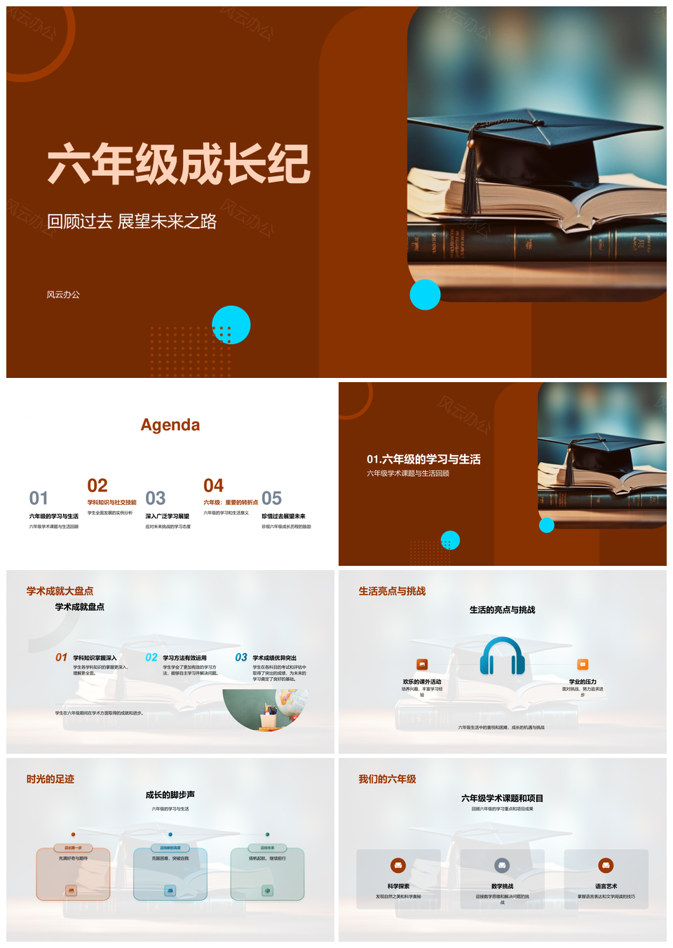 风云办公提供的六年级学术社交成长毕业全面发展纪PPT模板,下载格式为pptx,一共28页,作品中文字及图均可以修改和编辑,图片更改请在作品中右键图片并更换,文字修改请直接点击文字进行修改。