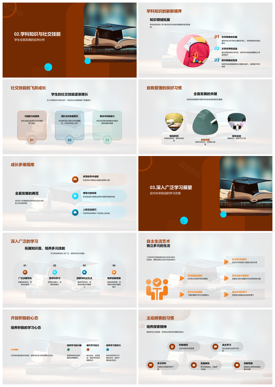 这是一张六年级学术社交成长毕业全面发展纪PPT模板,包含六年级、学术、社交、成长、毕业、全面发展等主题内容,也可用作六年级学术社交成长、学术社交成长毕业、六年级成长毕业全面发展、学术社交成长、社交成长毕业、成长毕业全面发展、六年级毕业全面发展、六年级学术成长、六年级社交成长、学术成长毕业、毕业全面发展、六年级学术、学术社交、社交成长、成长毕业等PPT场景使用。