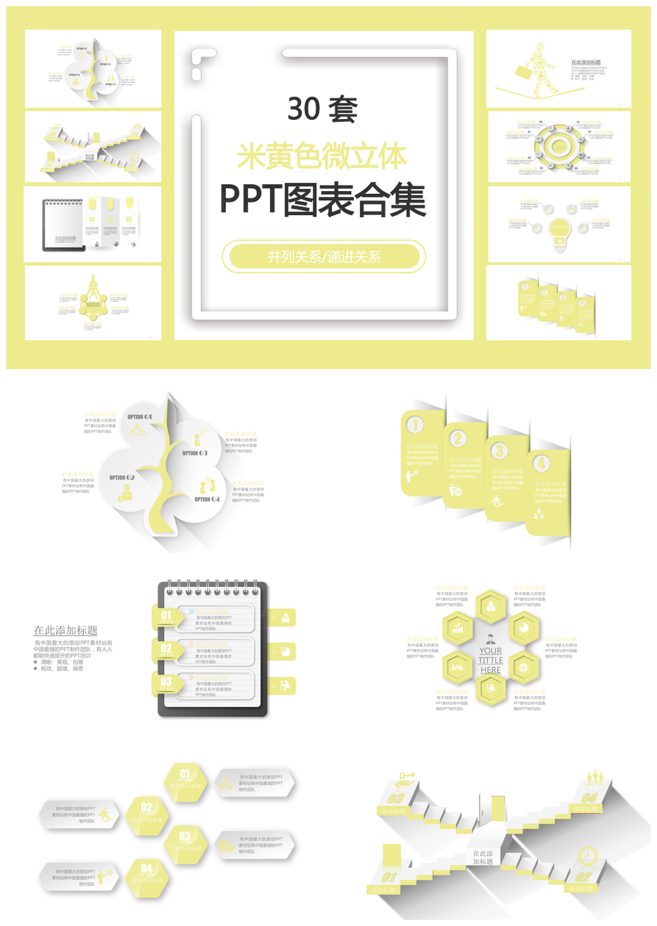 风云办公提供的米黄色微立体并列关系递进关系PPT图表合集,下载格式为pptx,一共31页,作品中文字及图均可以修改和编辑,图片更改请在作品中右键图片并更换,文字修改请直接点击文字进行修改。