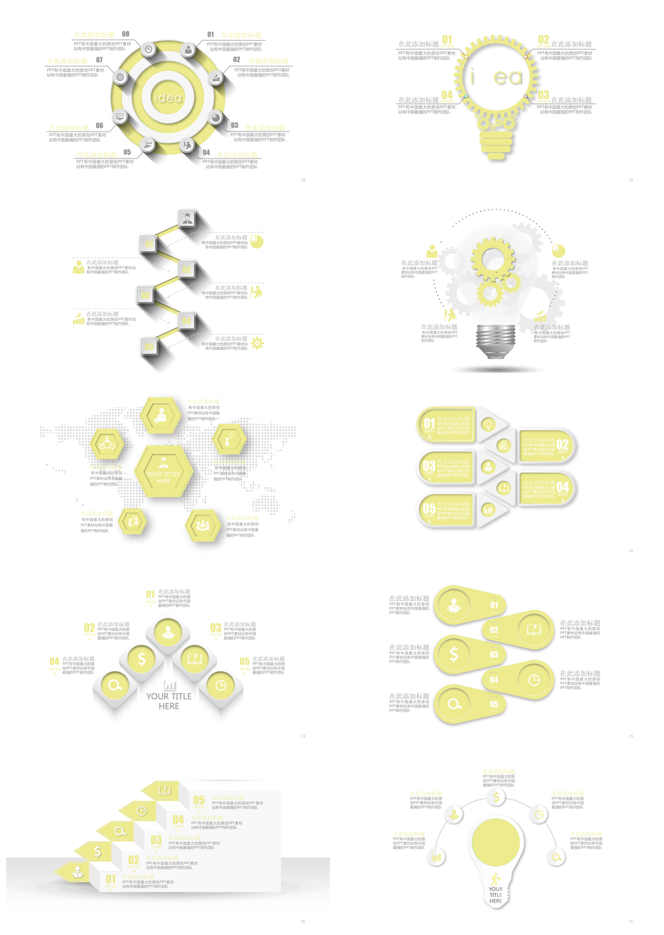 这是一张米黄色微立体并列关系递进关系PPT图表合集,包含米黄色、微立体、并列关系、递进关系、图表合集等主题内容,也可用作米黄色、微立体、并列关系、递进关系、PPT、图表、合集