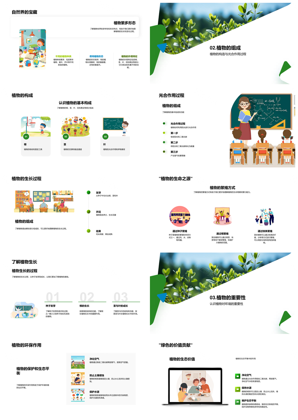 风云办公提供的绿色植物光合维系生态多样植树护环境PPT模板,下载格式为pptx,一共33页,作品中文字及图均可以修改和编辑,图片更改请在作品中右键图片并更换,文字修改请直接点击文字进行修改。