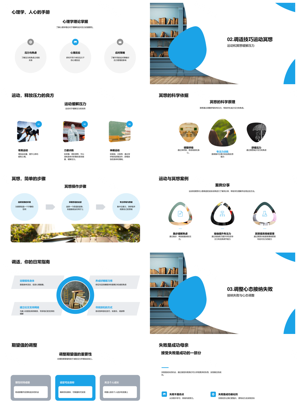 风云办公提供的高中生学习压力心理调适运动教育活动PPT模板,下载格式为pptx,一共33页,作品中文字及图均可以修改和编辑,图片更改请在作品中右键图片并更换,文字修改请直接点击文字进行修改。