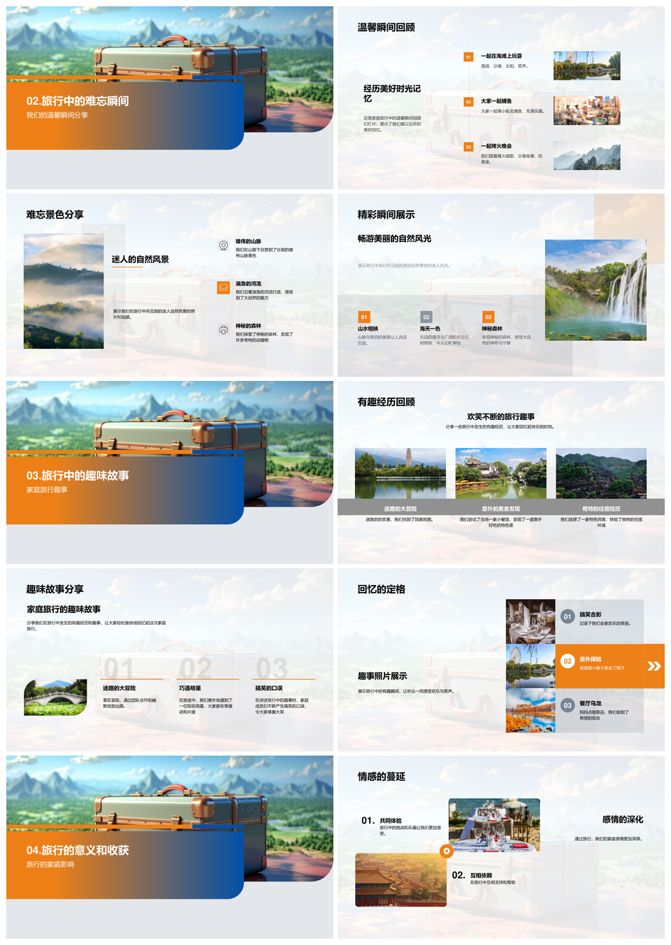 这是一张家庭行囊乐享旅途温情共忆美景趣事PPT模板,包含家庭、行囊、乐享、旅途、温情、共忆、美景、趣事等主题内容,也可用作家庭行囊乐享旅途、行囊乐享旅途温情、乐享旅途温情共忆、旅途温情共忆美景、温情共忆美景趣事、家庭行囊乐享、行囊乐享旅途、乐享旅途温情、旅途温情共忆、温情共忆美景、共忆美景趣事、家庭行囊、行囊乐享、乐享旅途、旅途温情等PPT场景使用。