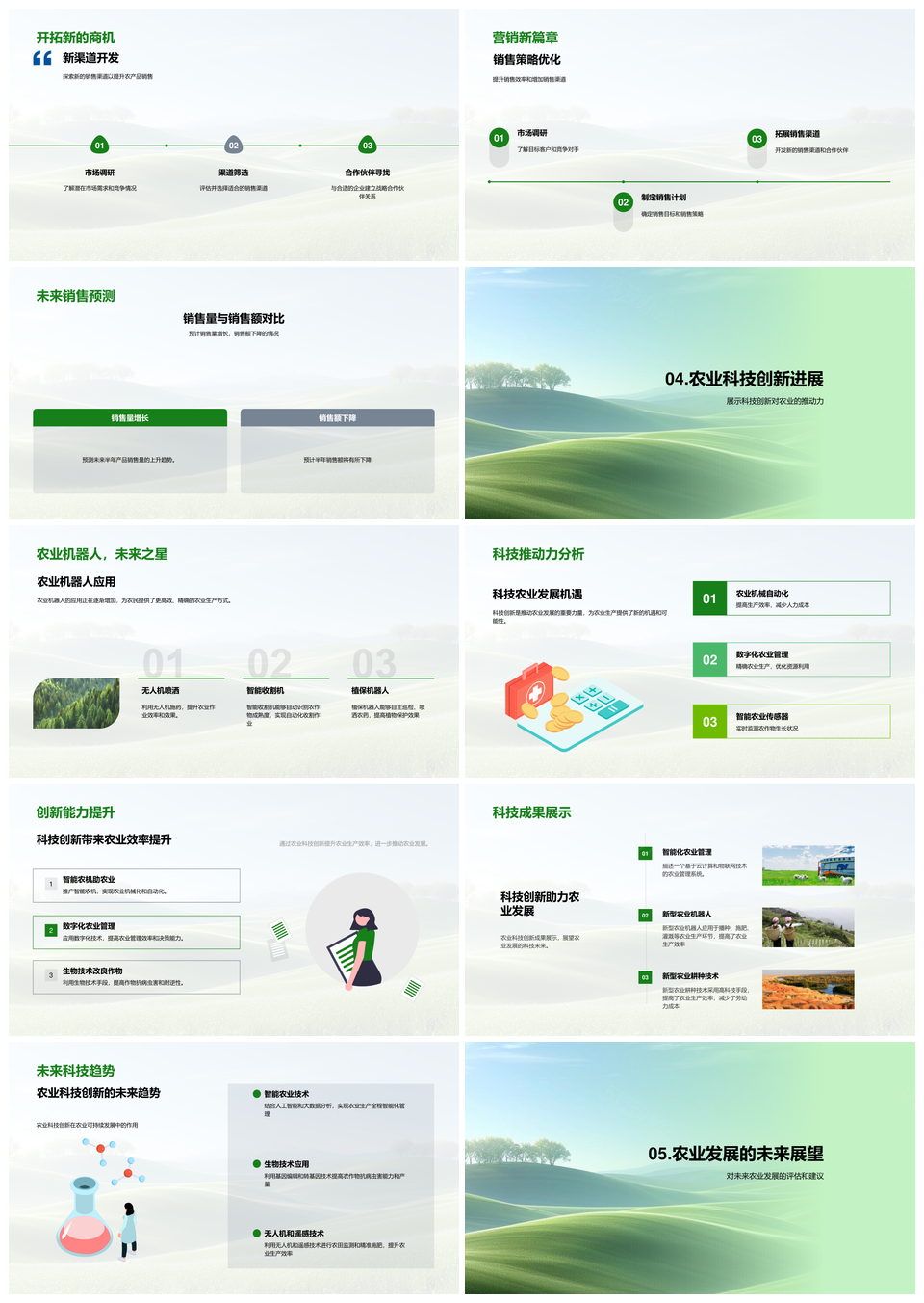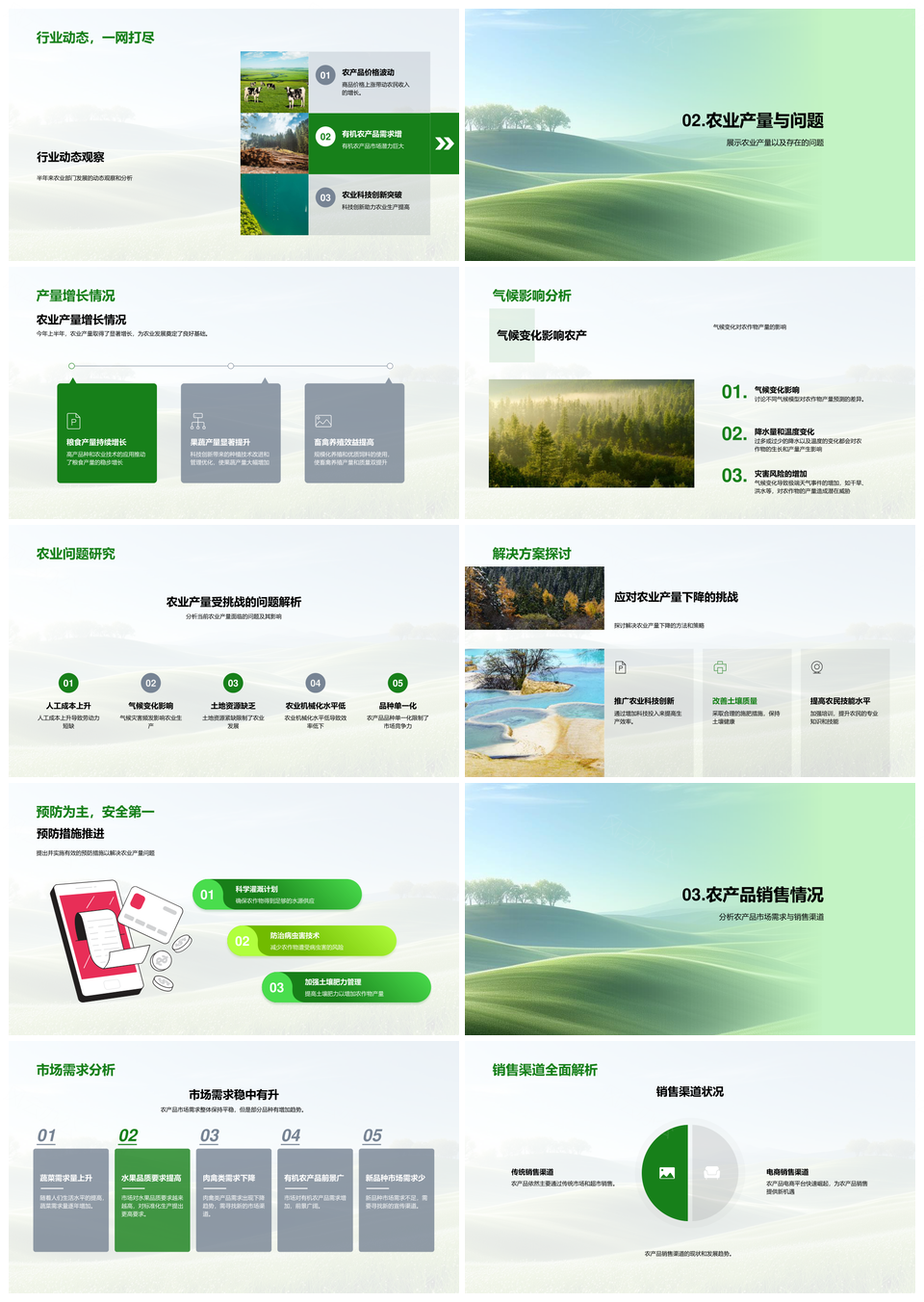 这是一张农林牧渔半年科技产量气候机器人发展报告PPT模板,包含农林牧渔、半年、科技、产量、气候、机器人、发展、报告等主题内容,也可用作气候机器人发展报告、农林牧渔发展报告、半年科技产量、气候机器人发展、机器人发展报告、科技产量气候、农林牧渔科技产量、半年气候机器人、产量气候机器人、科技产量、气候机器人、发展报告、机器人发展、半年产量、农林牧渔报告等PPT场景使用。 风云办公提供的农林牧渔半年科技产量气候机器人发展报告PPT模板,下载格式为pptx,一共33页,作品中文字及图均可以修改和编辑,图片更改请在作品中右键图片并更换,文字修改请直接点击文字进行修改。