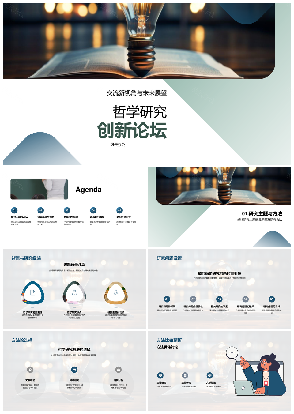 风云办公提供的哲学研究创新论坛新视角理解框架成果PPT模板,下载格式为pptx,一共29页,作品中文字及图均可以修改和编辑,图片更改请在作品中右键图片并更换,文字修改请直接点击文字进行修改。