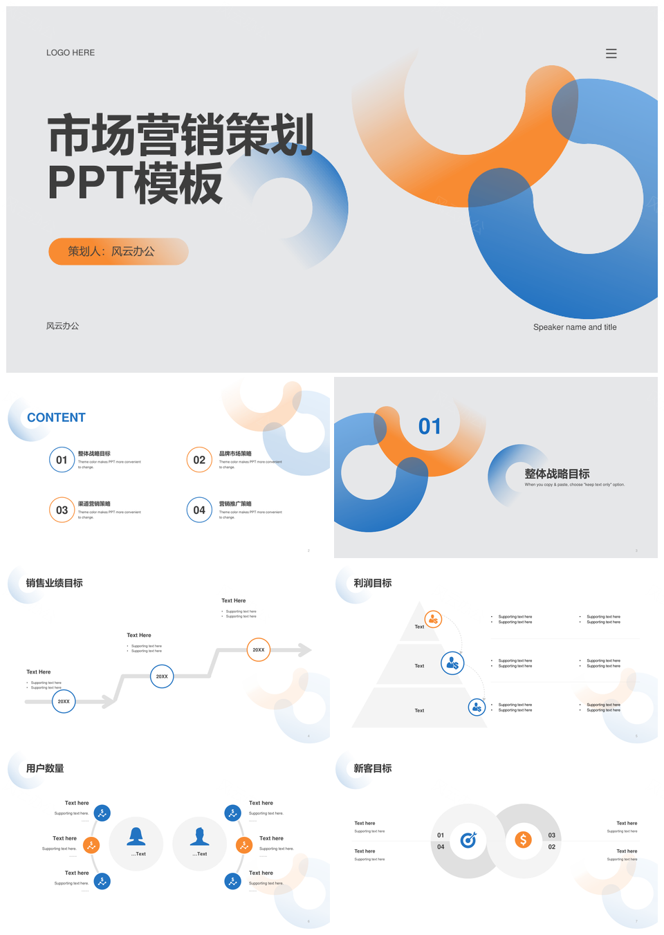 风云办公提供的蓝橙互联网市场营销策划简约扁平PPT模板,下载格式为pptx,一共20页,作品中文字及图均可以修改和编辑,图片更改请在作品中右键图片并更换,文字修改请直接点击文字进行修改。