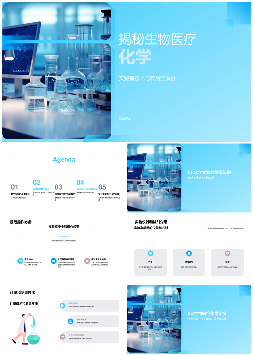 风云办公提供的生物医疗化学实验技术与药物分子合成PPT模板,下载格式为pptx,一共23页,作品中文字及图均可以修改和编辑,图片更改请在作品中右键图片并更换,文字修改请直接点击文字进行修改。
