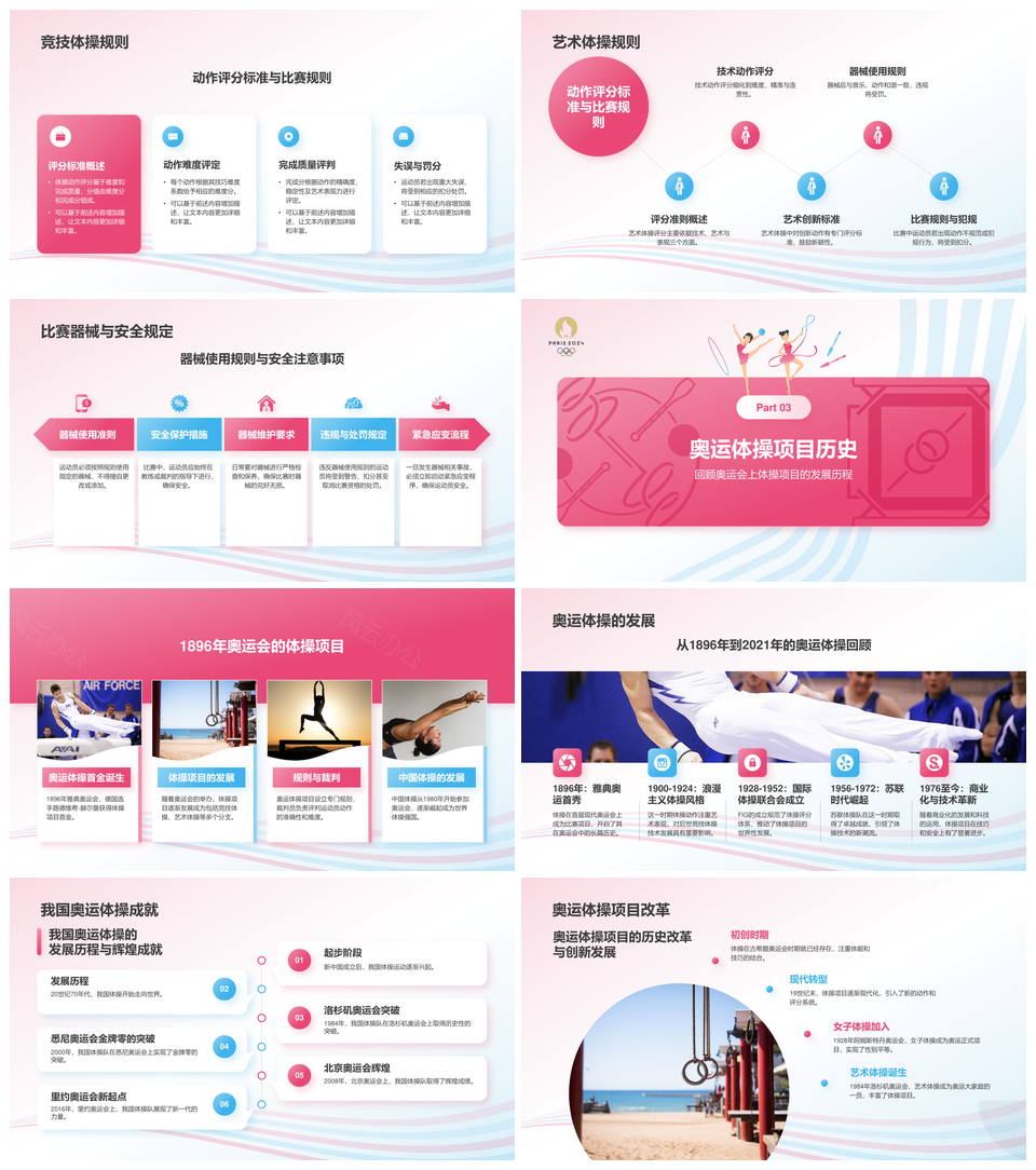 2025奥运体操竞技艺术历史规则器械科普PPT模板推荐