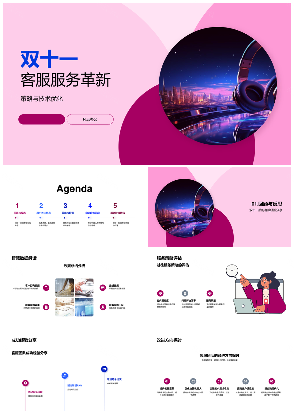 这是一张双十一客服服务革新策略技术优化提升服务质量PPT模板,包含双十一、客服、服务、革新、策略、技术、优化、提升、质量等主题内容,也可用作双十一客服服务革新、客服服务革新策略、服务革新策略技术、革新策略技术优化、策略技术优化提升、技术优化提升服务质量、双十一客服服务、客服服务革新、服务革新策略、革新策略技术、策略技术优化、技术优化提升、优化提升服务质量、双十一客服、客服服务等PPT场景使用。 风云办公提供的双十一客服服务革新策略技术优化提升服务质量PPT模板,下载格式为pptx,一共28页,作品中文字及图均可以修改和编辑,图片更改请在作品中右键图片并更换,文字修改请直接点击文字进行修改。