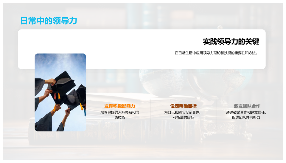 这是一张领导力理论实践管理学提升分析应用PPT模板,包含领导力、理论、实践、管理学、提升、分析、应用等主题内容,也可用作领导力理论实践管理学、理论实践管理学提升、实践管理学提升分析、管理学提升分析应用、领导力理论实践、领导力理论管理学、领导力实践管理学提升、理论实践管理学提升、实践管理学提升分析、管理学提升分析应用、领导力理论、领导力实践、理论实践、管理学提升、分析应用等PPT场景使用。