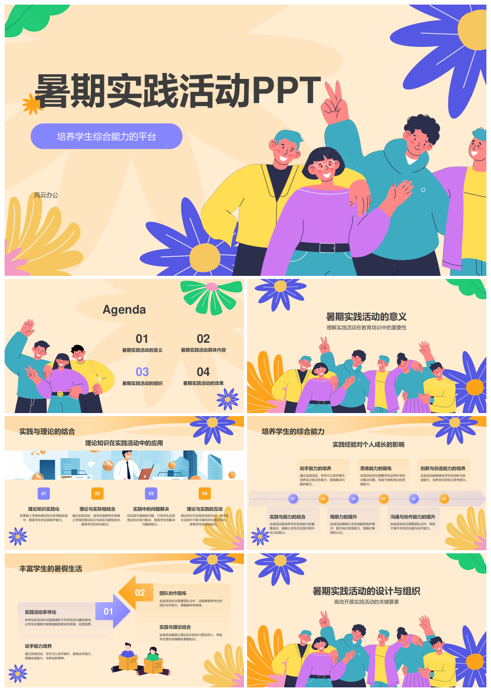 风云办公提供的暑期实践策划助力学生素质能力提升PPT模板,下载格式为pptx,一共17页,作品中文字及图均可以修改和编辑,图片更改请在作品中右键图片并更换,文字修改请直接点击文字进行修改。