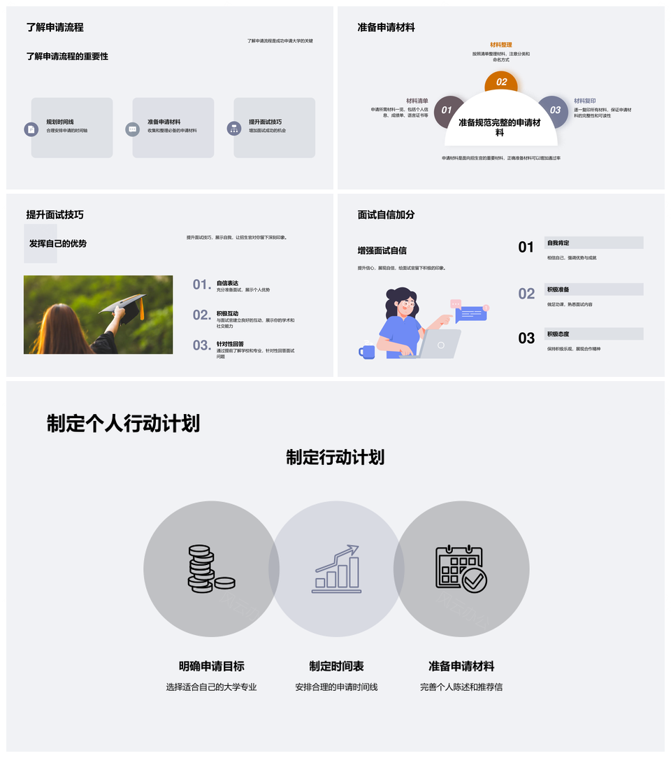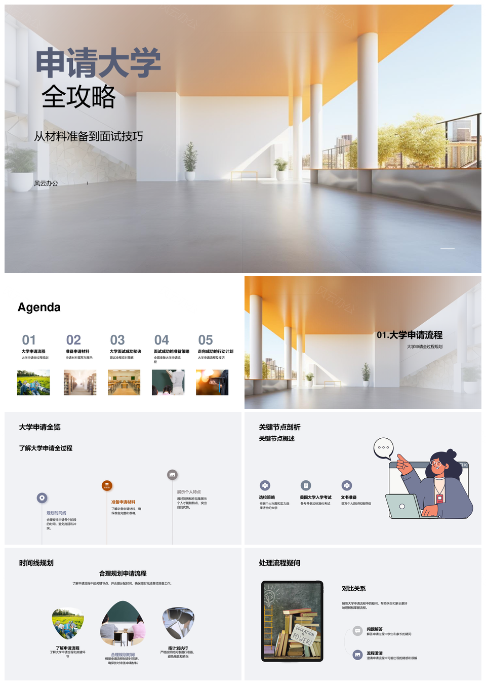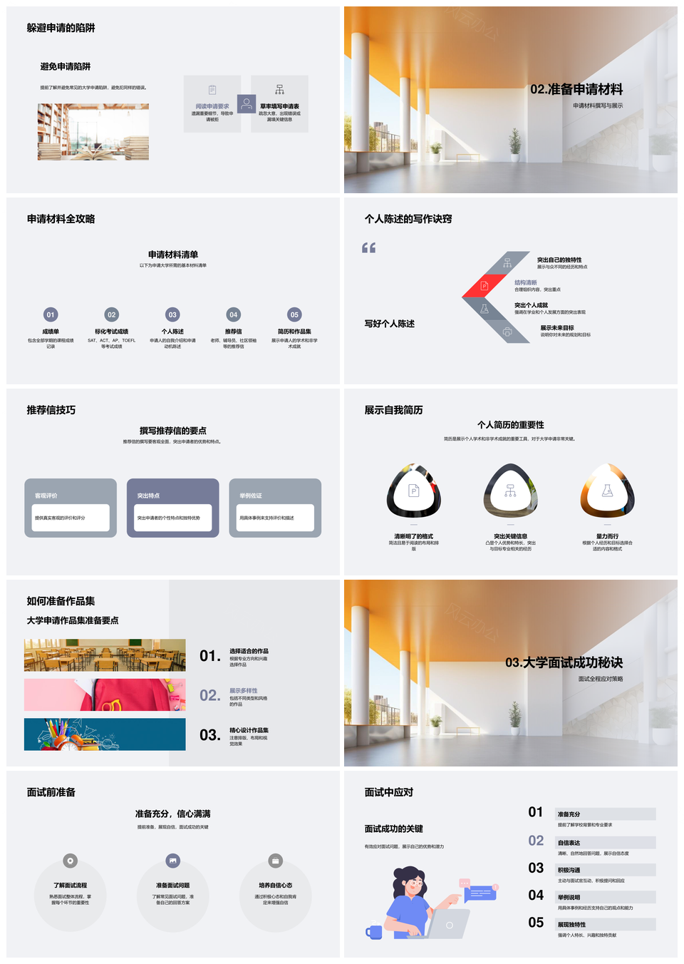 大学申请全攻略材料面试陈述推荐信作品集流程节点PPT模板推荐