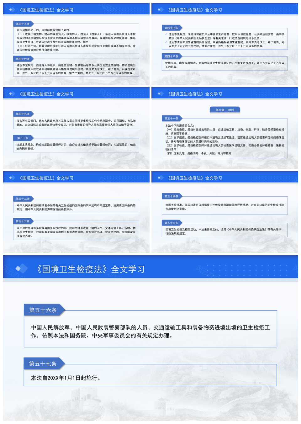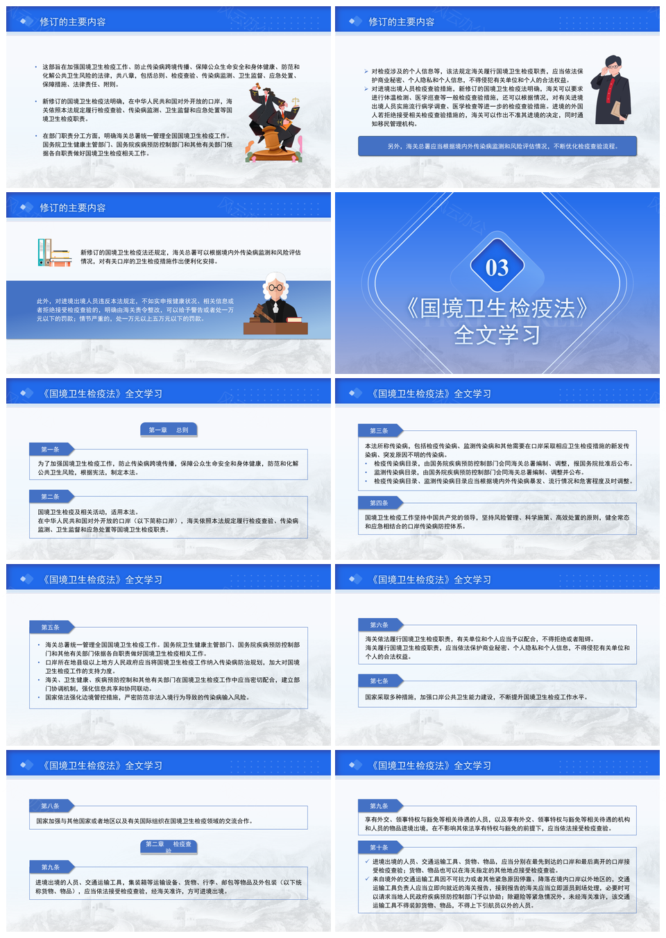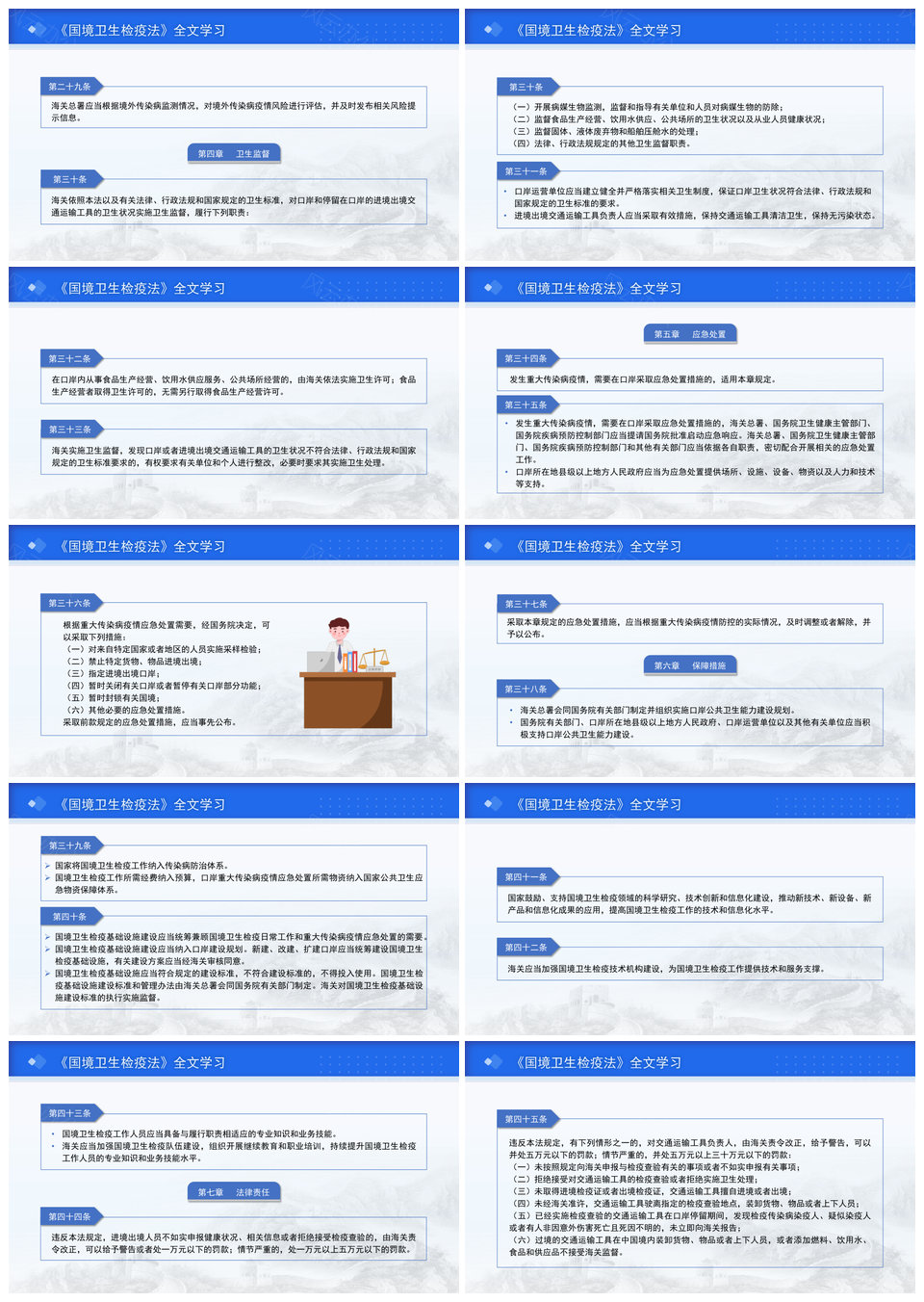 风云办公提供的2024新修订国境卫生检疫法解读PPT模板,下载格式为pptx,一共45页,作品中文字及图均可以修改和编辑,图片更改请在作品中右键图片并更换,文字修改请直接点击文字进行修改。