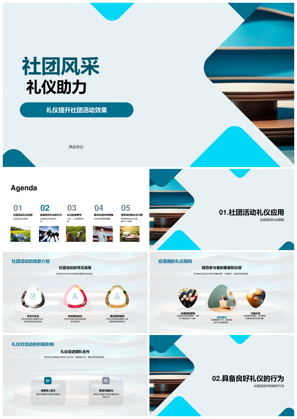 风云办公提供的社团风采礼仪助力活动PPT模板,下载格式为pptx,一共25页,作品中文字及图均可以修改和编辑,图片更改请在作品中右键图片并更换,文字修改请直接点击文字进行修改。